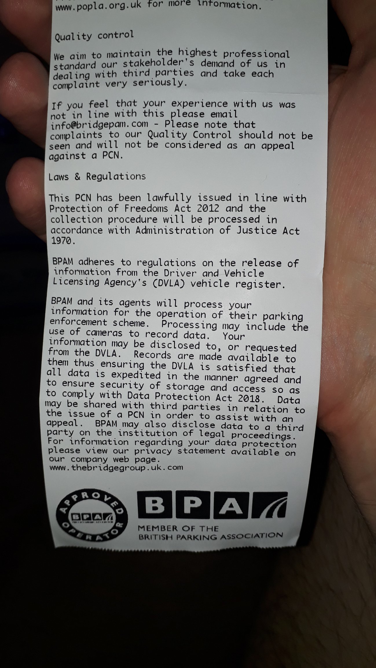 Parliament is well aware of the MO of these private parking companies, many of whom are former clampers, and on 15th March 2019 a Bill was enacted to curb the excesses of these shysters. Codes of Practice are being drawn up, an independent appeals service will be set up, and access to the DVLA's date base more rigorously policed, persistent offenders denied access to the DVLA database and unable to operate.