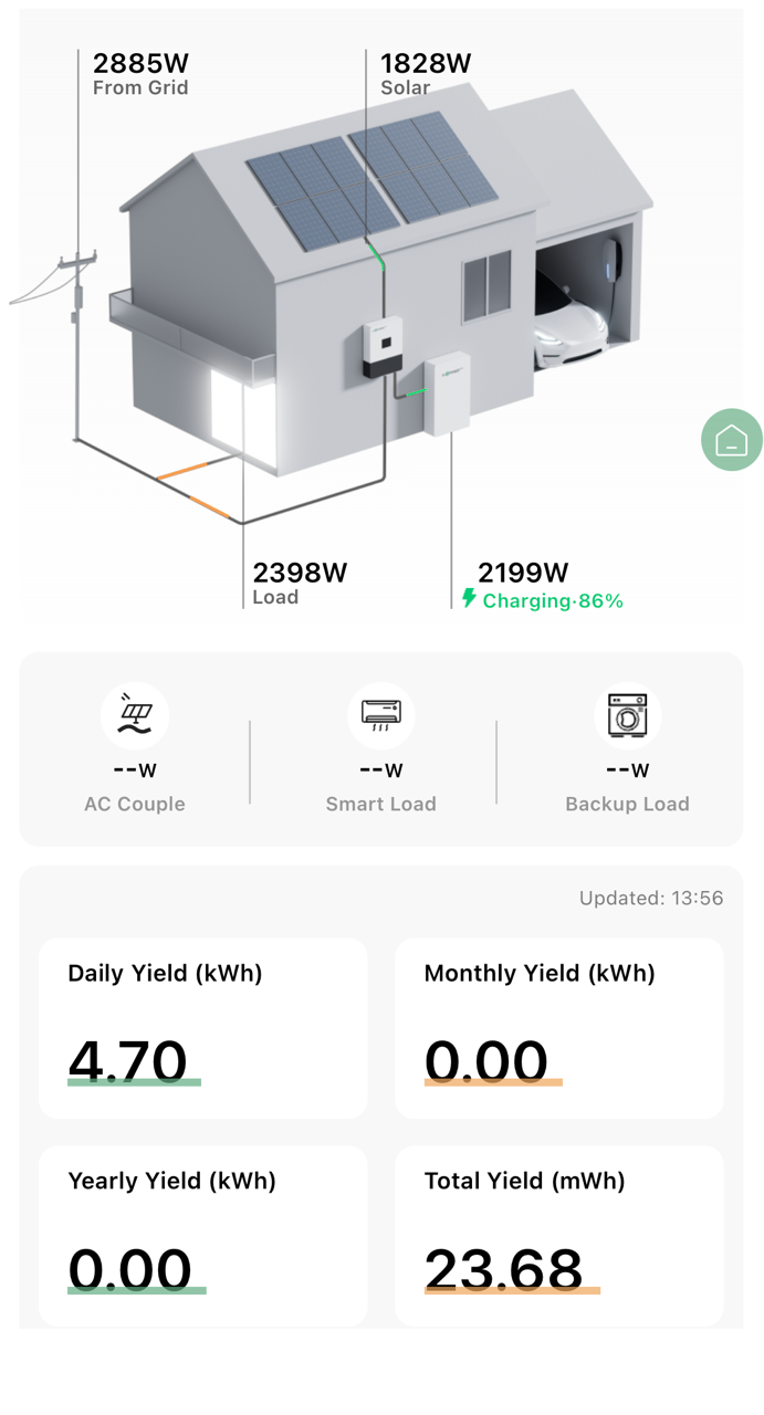 Issues Include chart sizing and seeing detail is impossible ( will not zoom vertically so current morning gen and load on chart is virtually zero as scale is stuck on the max overnight grid draw+ - it was an EV boost+ at over 10kW so scale stuck at 40! ), incorrect title ( not real time data) units unclear/ cursor shows them as Watts but they are kW, the travelling current bar too indistinct and today solar gen appears to be just going to batts when approx 50% is going to house load, seems to assume a hybrid inverter, on phone (Android) will not rotate to landscape,