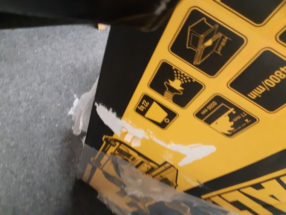 The plastic packaging was half removed, so I taped it up around the box. But I guess during transit the tape must have come off, and stripped some of the front of the colouring of the box. I have attached photos.
