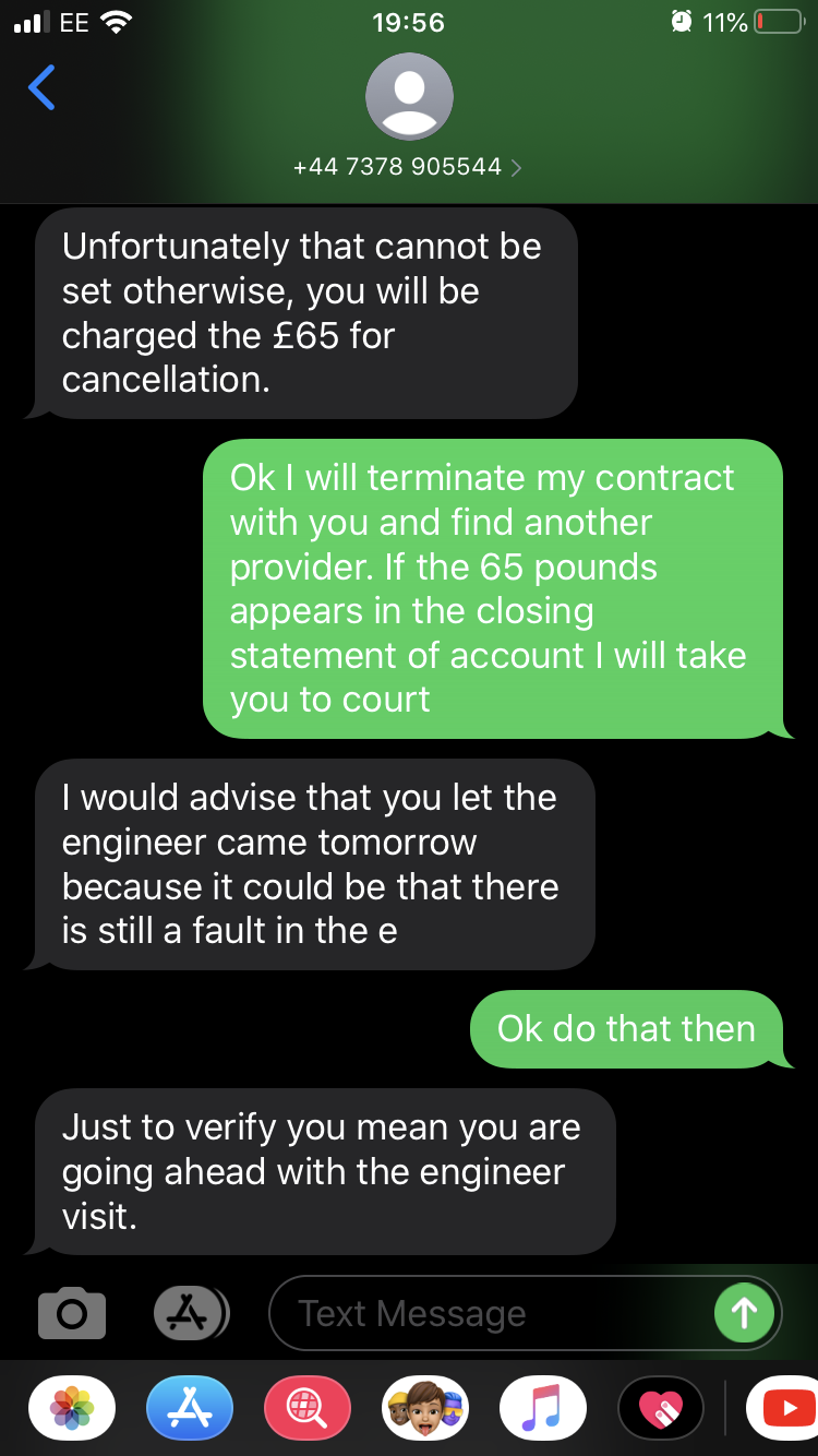 Don't try to turn this around Mr TalkTalk employee, this about how your company puts customers in a position of choosing to pay a £65 cancelation fee or allowing an engineer to needlessly drive his atmosphere polluting vehicle to said customers house for no justifiable reason0