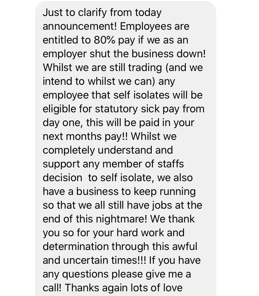 It doesn't mean that all workers must cease work and the business close. Where appropriate the government want businesses to continue but recognise that they may have less work. The support scheme is to enable them to retain their workforce so they can respond more quickly when the economy starts to recover.