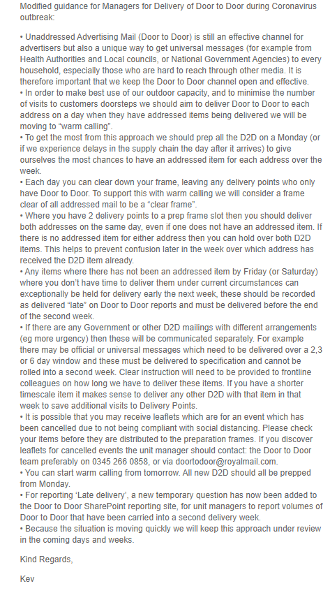 Covid 19 & Royal Mail