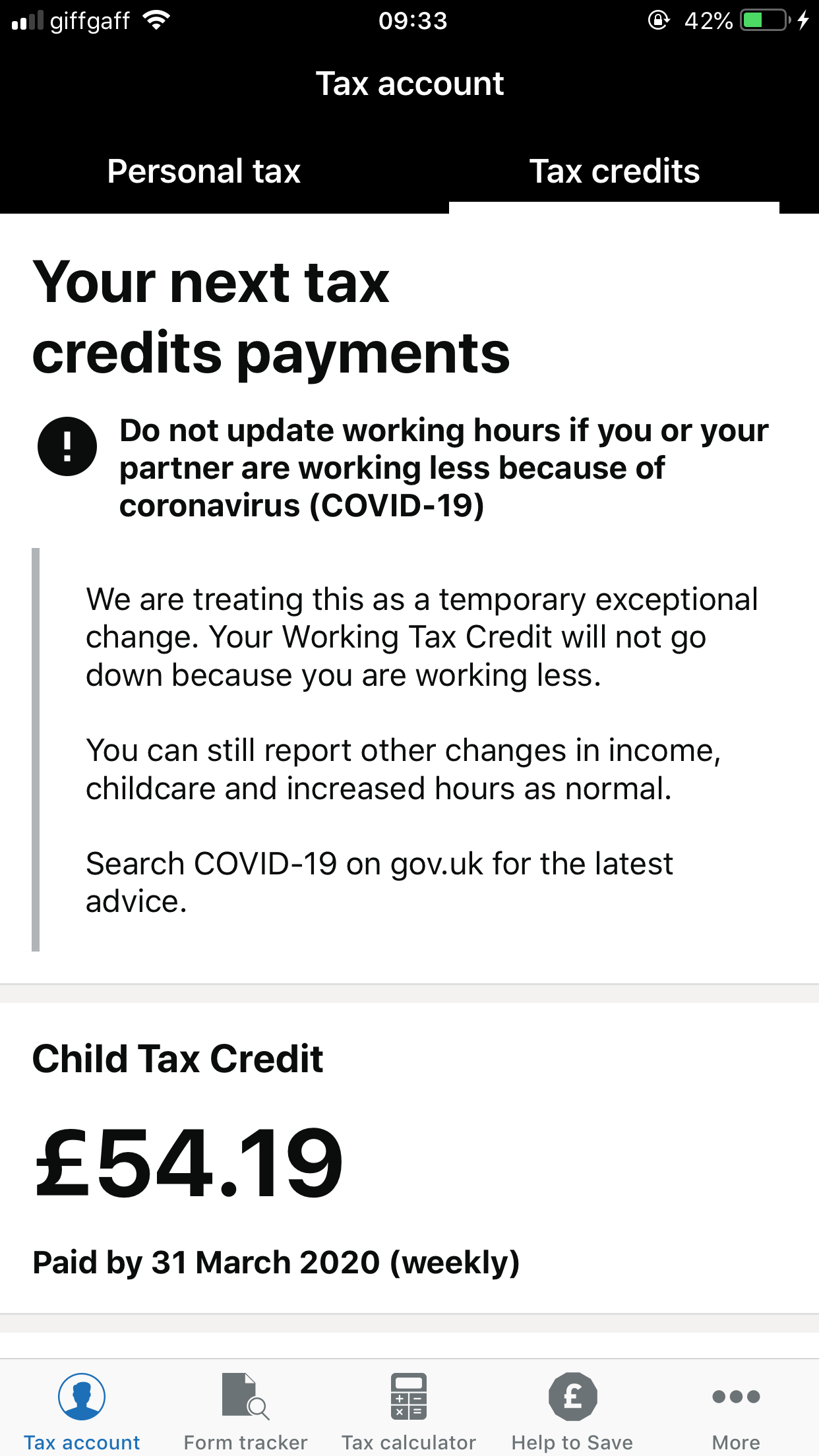 Hi FtbDreaming. The OPs situation is very similar to mine. I was wondering if you could provide a screen shot of the Tax Credits app where this information is stated as I can't find any information anywhere. Also, does this include changes to childcare costs? I am a single parent and worried sick!! Many thanksFtbDreaming said:It says on the tax credit app not to inform them of a reduction in hours during the outbreak as it is exceptional circumstances/ temporary.1 -