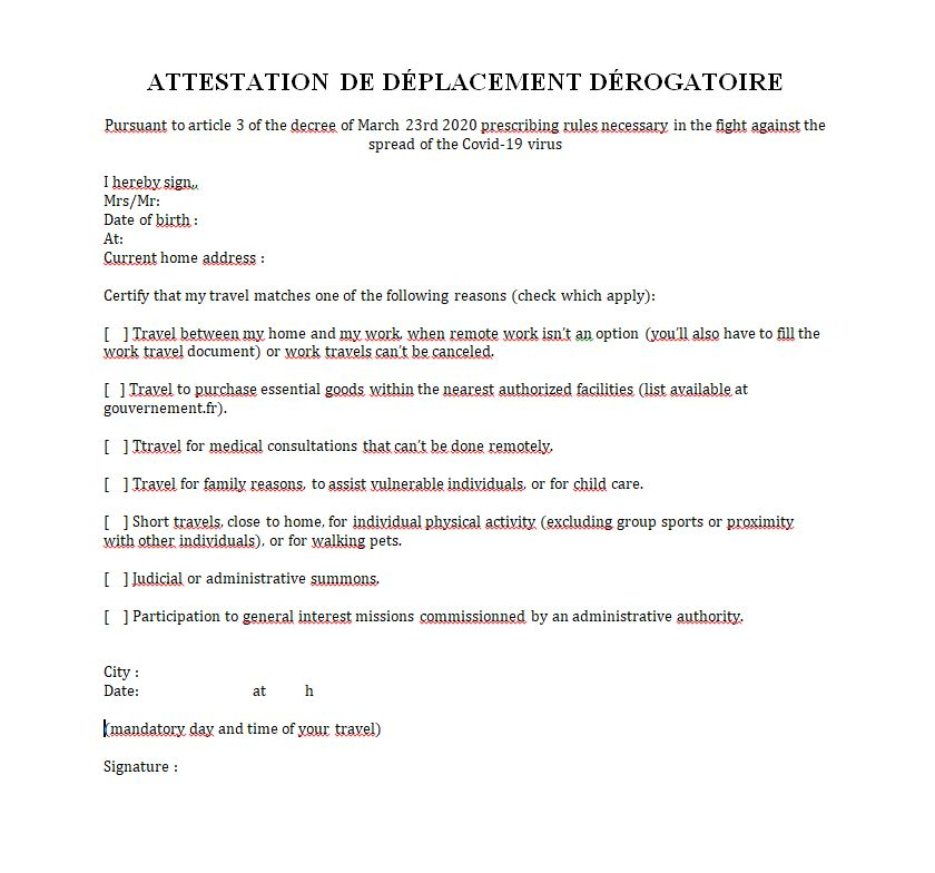 Fill this in and take it with (French version but in English)