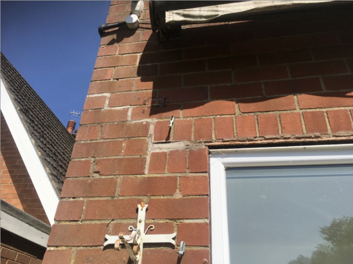 There is the stepped crack to the left of the window: