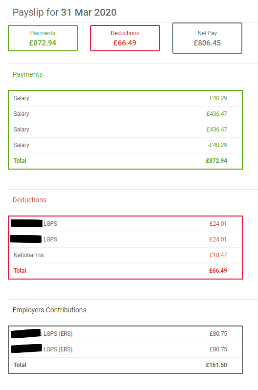 My mum and I actually work at the same place. We both work the same hours. My figures add up perfectly for the pension contributions (what I actually paid in versus what they have me down as paying in) although the salary in the year to date is wrong, same as hers. The only difference in our wage slips seems to come down to her having a bit of time on sick, whereas I haven't had any. She was paid in full though so there's no actual difference in salary or contributions so I just don't know.0 -