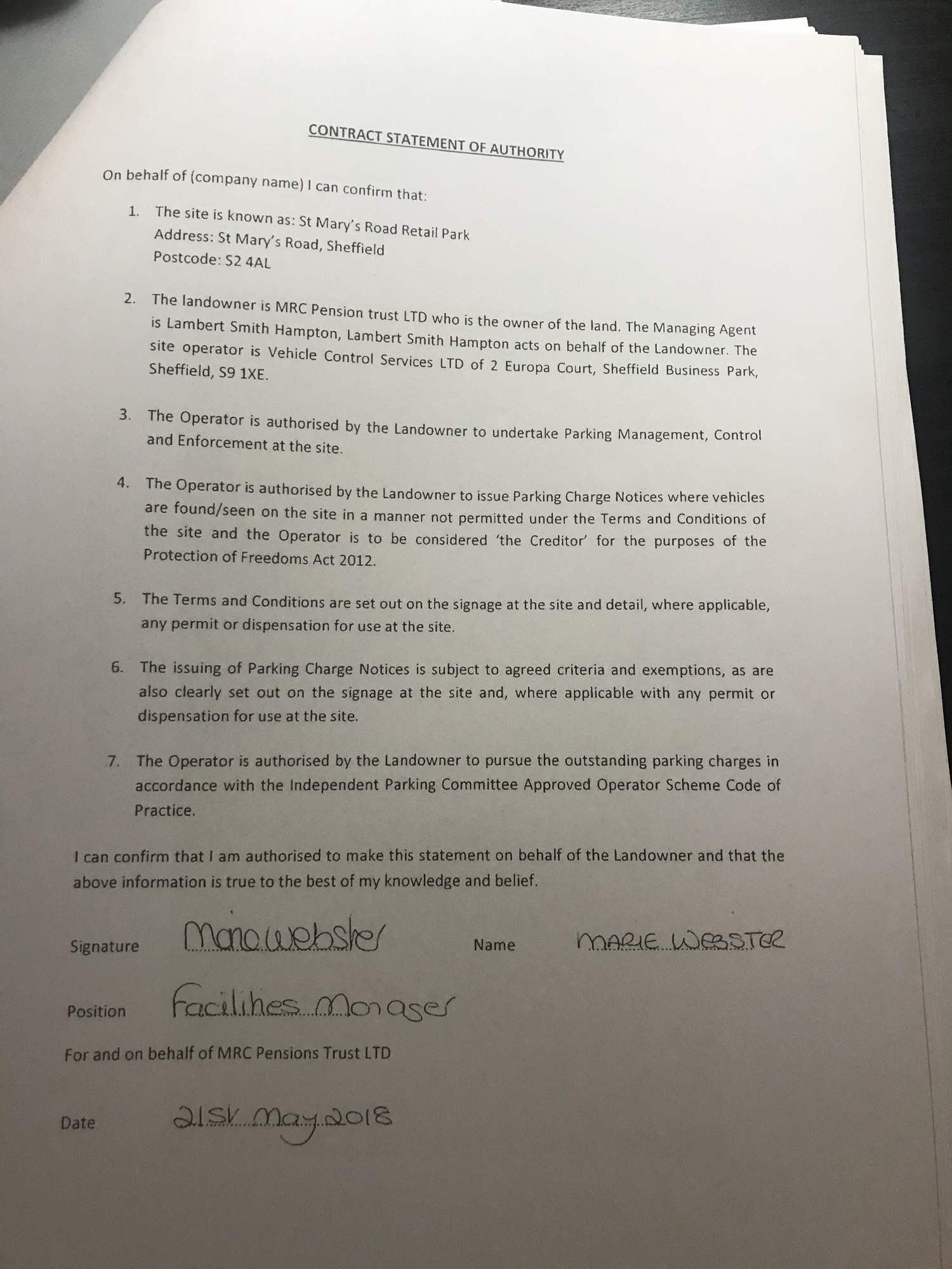 The Contract Statement of Authority they have attached was signed by the landowner on 21st May 2018 without any other contracts from 2016 evidencing the firm had the right to act on their behalf back in 2016.