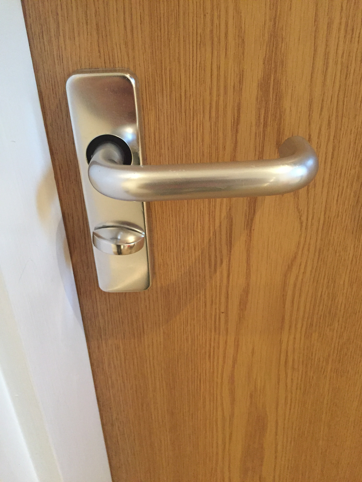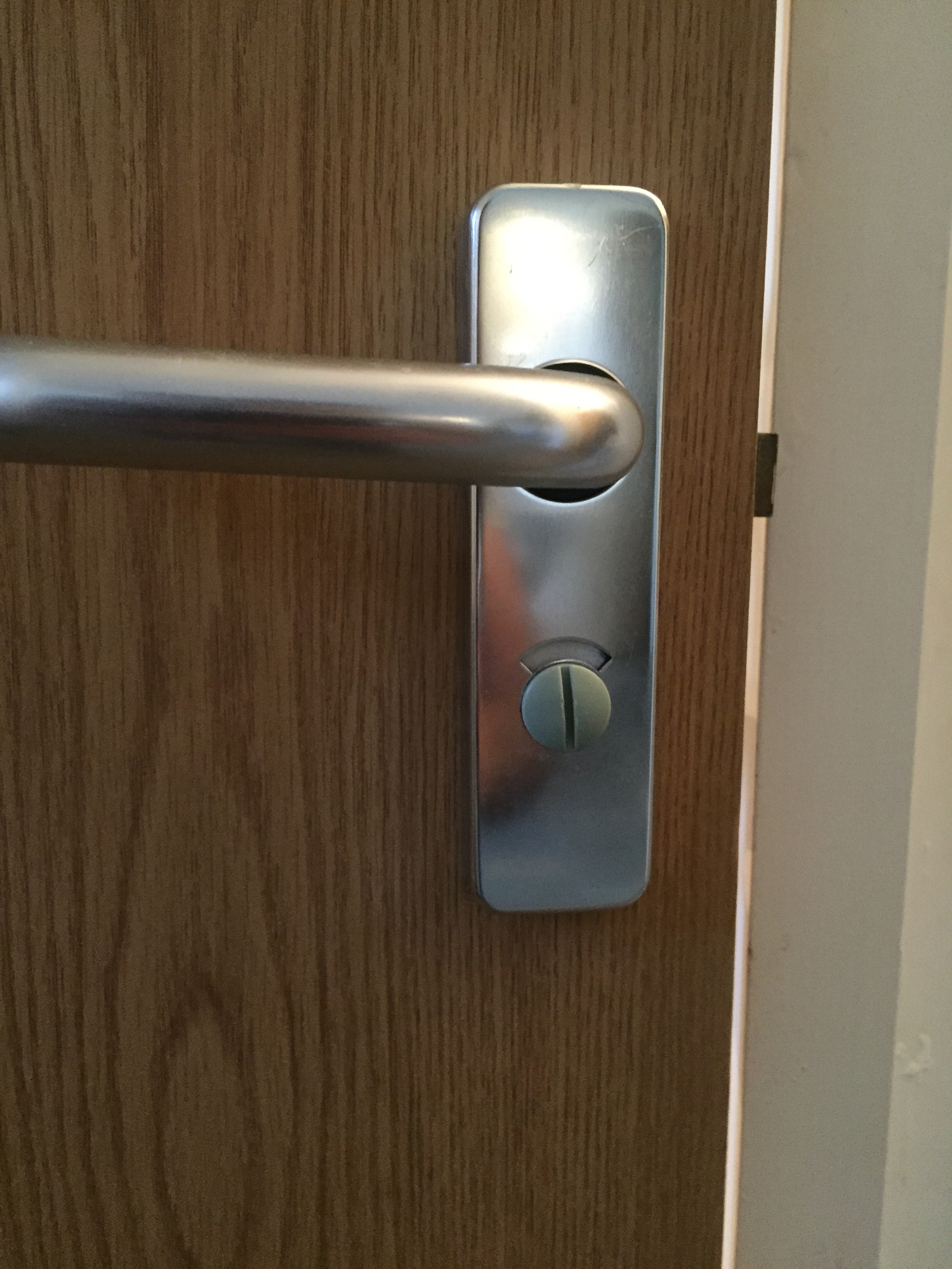I’m trying to remove a door handle with a thumb turn lock but I can’t see a way to take it apart.