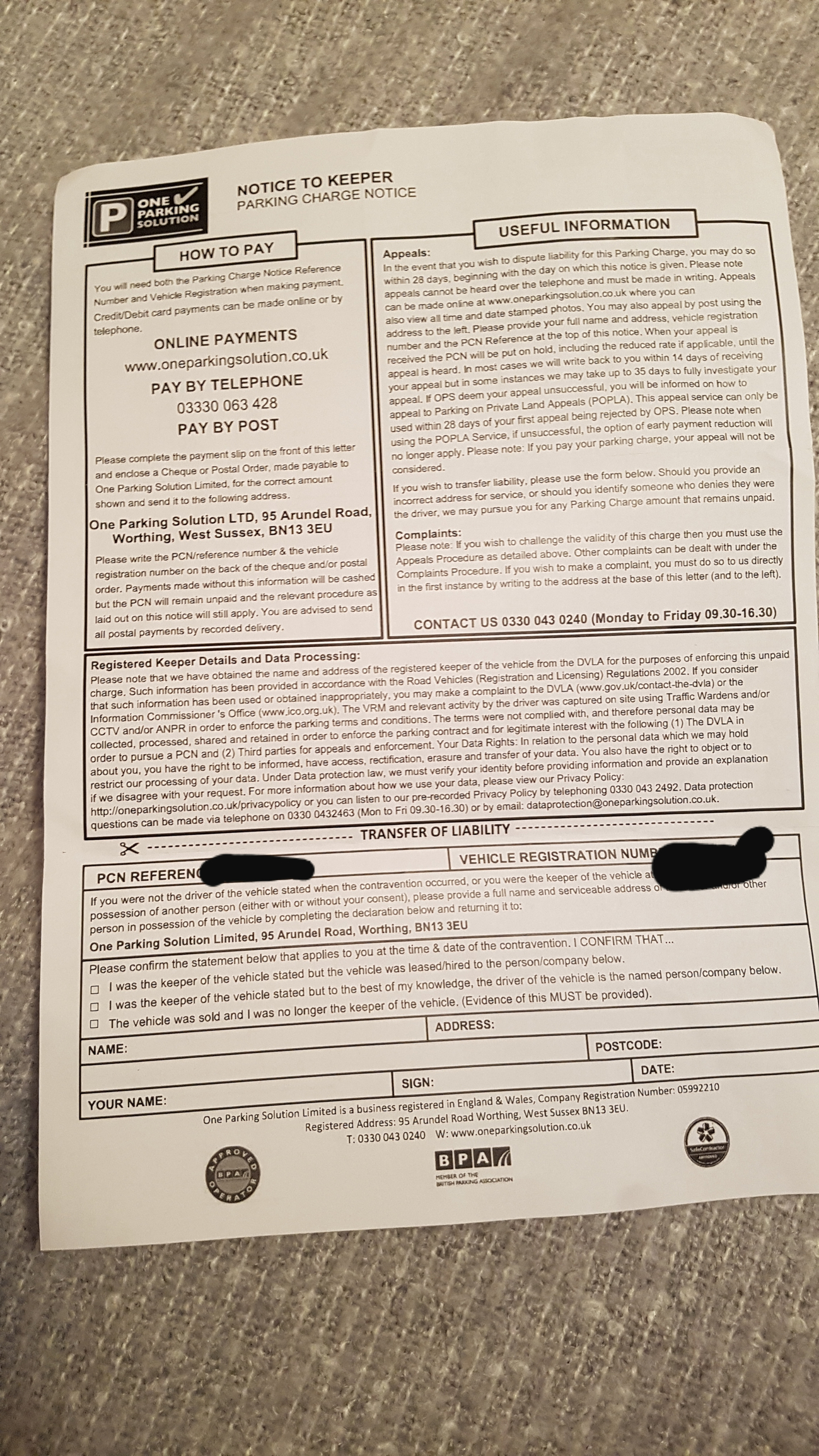 from the newbies guide, is the point to compile excessive pages as part of the appeal to dissuade the PPC from continuingYes. But don't have the second point about 'the operator doesn't know who was driving' because it detracts and distracts the slightly less than clever Assessors (sad but true) that POPLA has, who can't add up to 14 even when told how it's worked out, not that this is relevant to your case. I just mean their Assessors are not legally trained and many of them come across as dim template-using spoon fed robots who can't learn from earlier mistakes. Why not change #2 to a point that says the car is shown on street and the oprator is put to strict proof of the boundary map (OPS never havea boundary map). And add that an unauthorised by the landowner Google StreetView screenshot, mocked up to suggest it is a true 'aerial view' with some coloured crosses on it, is not a boundary map. Point out that the car is shown on roadway at a give way sign at a T junction and you believe the operator only operates a few bays and not the forecourt. Makes it hard for OPS...they aren't the cleverest tools in the BPA box. I am not saying theat road IS public highway, by the way. I am saying, SUGGEST IT! If itlooks like a forecourt/approach road then it is one. Re your pic of the entrance with no sign, make sure it doesn't detract from the above point, so make sure you zoom in closer into the car park than that give way marking/forecourt! And embed it into your appeal document, as an illustration, not as a separately uploaded image. Make it easy for Tim-nice-but-dim at POPLA who is almost certainly doing these 'decisions' online in 10 minutes, in front of his telly. if OPS (or any parking company) have covered all their bases , then no appeal can win it in a case like this, hence why you are looking for that one chink in their armourBelieve me, OPS never cover all bases and have no armour. I've never seen them win in court when a Defendant turns up. PRIVATE 'PCN'? DON'T PAY BUT DON'T IGNORE IT (except N.Ireland).