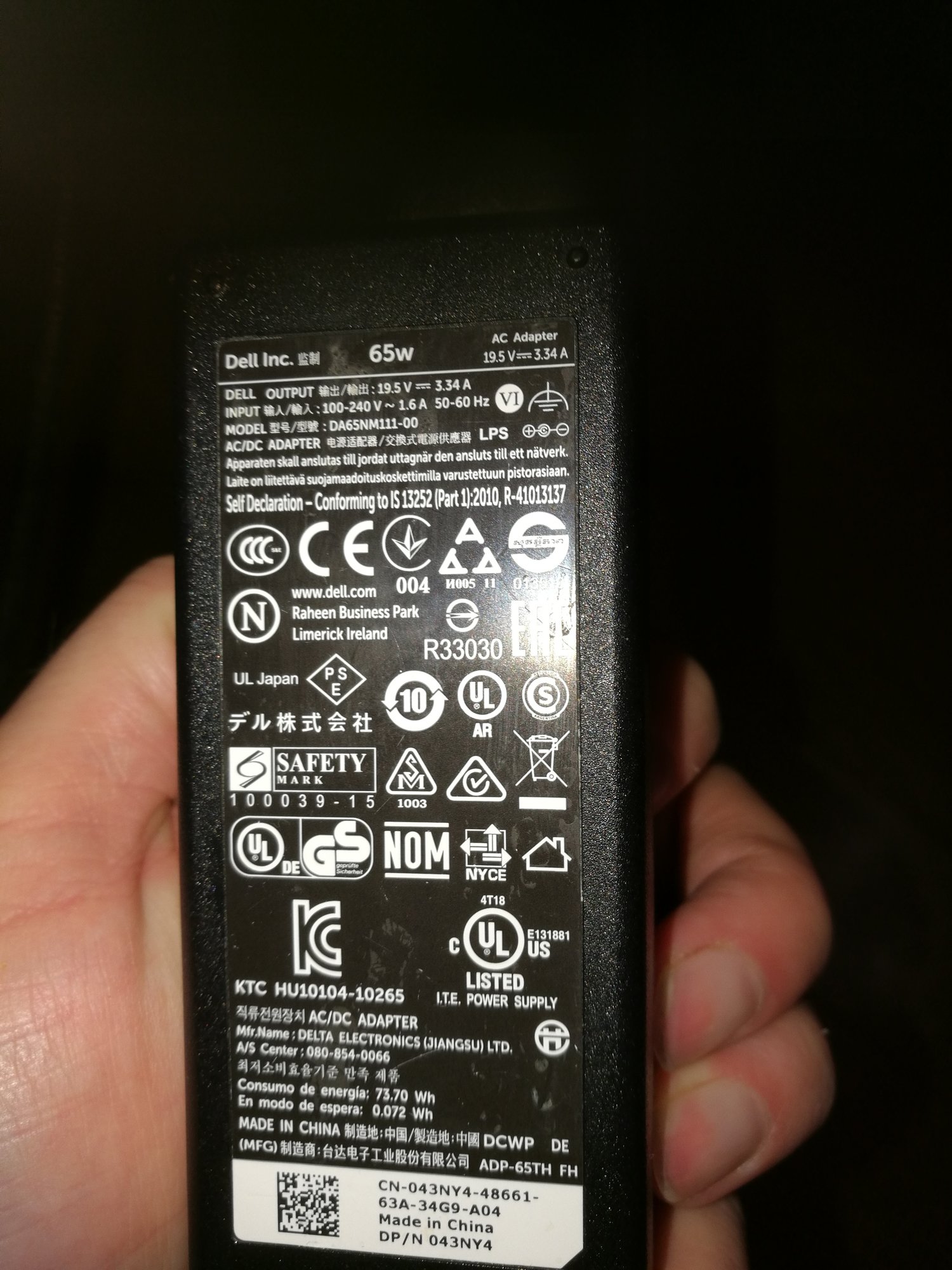 Need to make sure that it is supplying enough power to the laptop.Power Device Input Voltage 100-240V 50/60Hz Output Voltage 19.5 V @ 3.34 A Power 65 Watt Connector 4.5mm