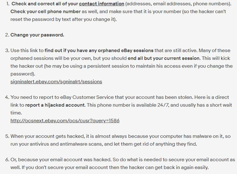 Here's recommendations - have you checked all your Ebay personal details/account information inc phone, address etc)