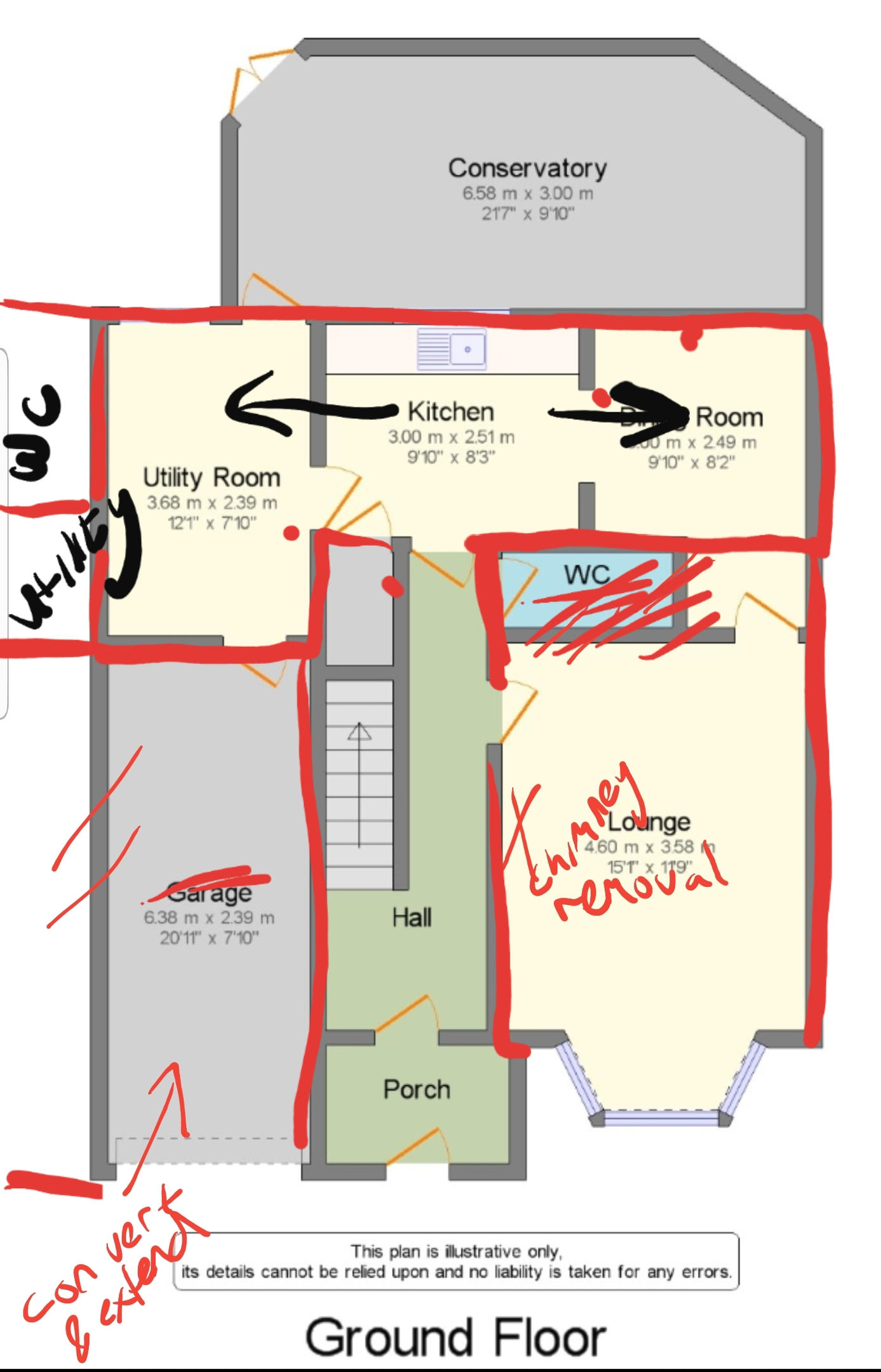 I have recently moved home and bought a house with the intention of rebuilding and renovating. I have sketched an idea of what i would like doing from the current floor plan. I dont have a clue about building so was wondering if this was all at least possible. I would like to extend it laterally slightly more wider than the garage. Also convert the garage into another sitting/family room. Also the kitchen needs to widened where I can get an island. any suggestion are welcome.