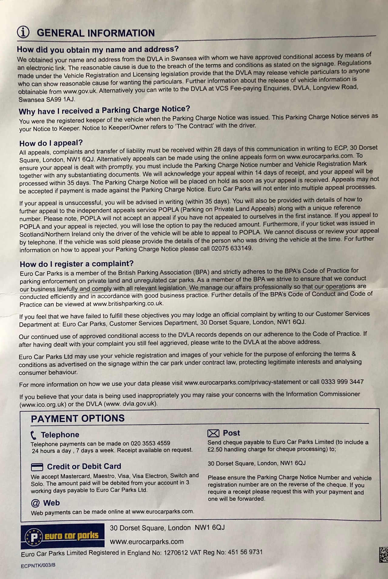 We were surprised to receive the below PCN. If matters, it does not state the maximum parking allowance or how much did we overstayed.