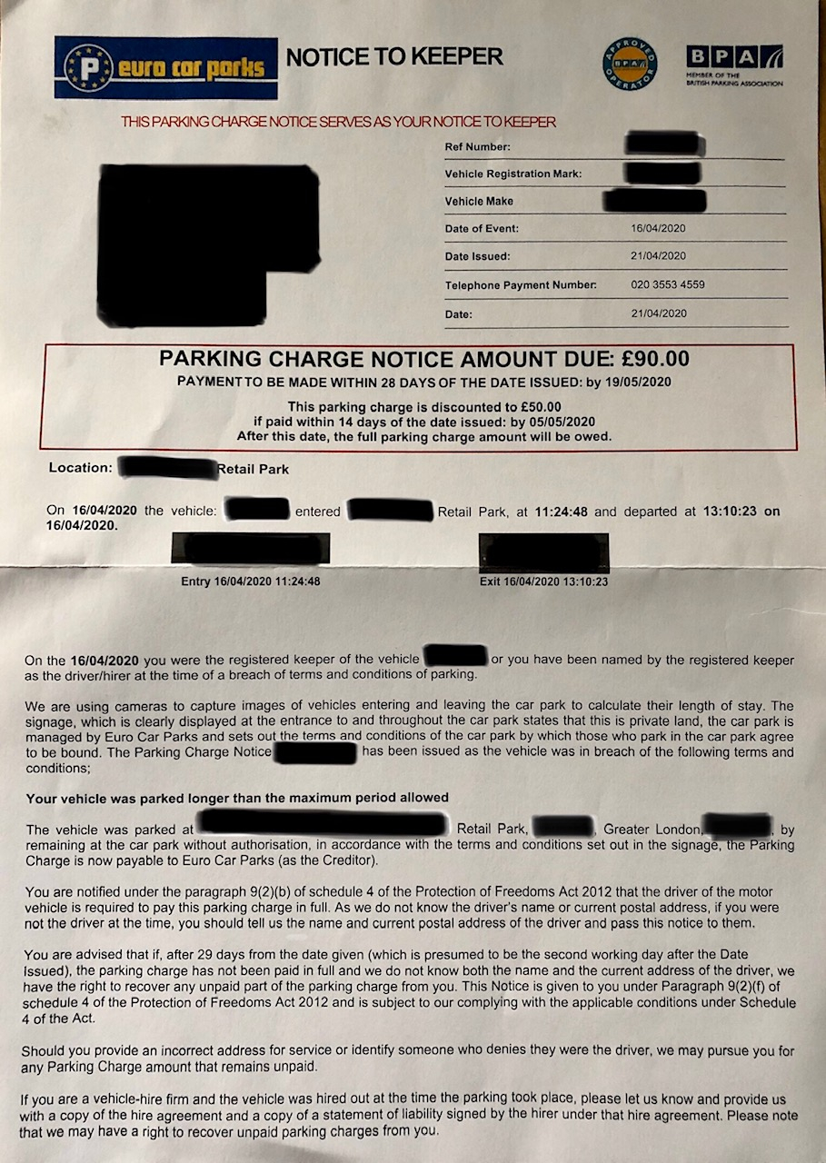 Parliament is well aware of the MO of these private parking companies, many of whom are former clampers, and on 15th March 2019 a Bill was enacted to curb the excesses of these shysters. Codes of Practice are being drawn up, an independent appeals service will be set up, and access to the DVLA's date base more rigorously policed, persistent offenders denied access to the DVLA database and unable to operate.
