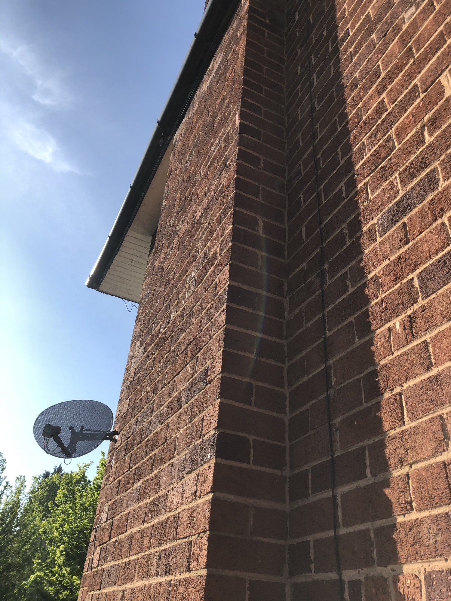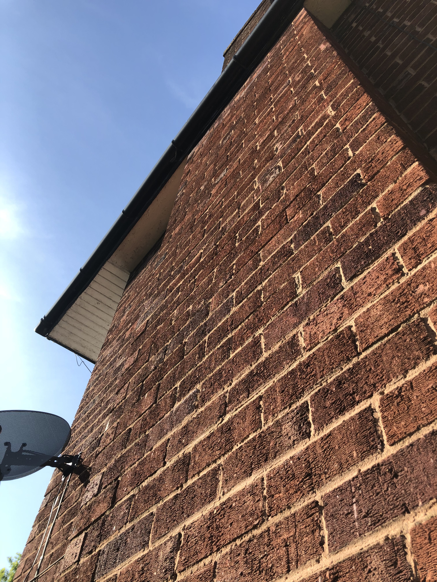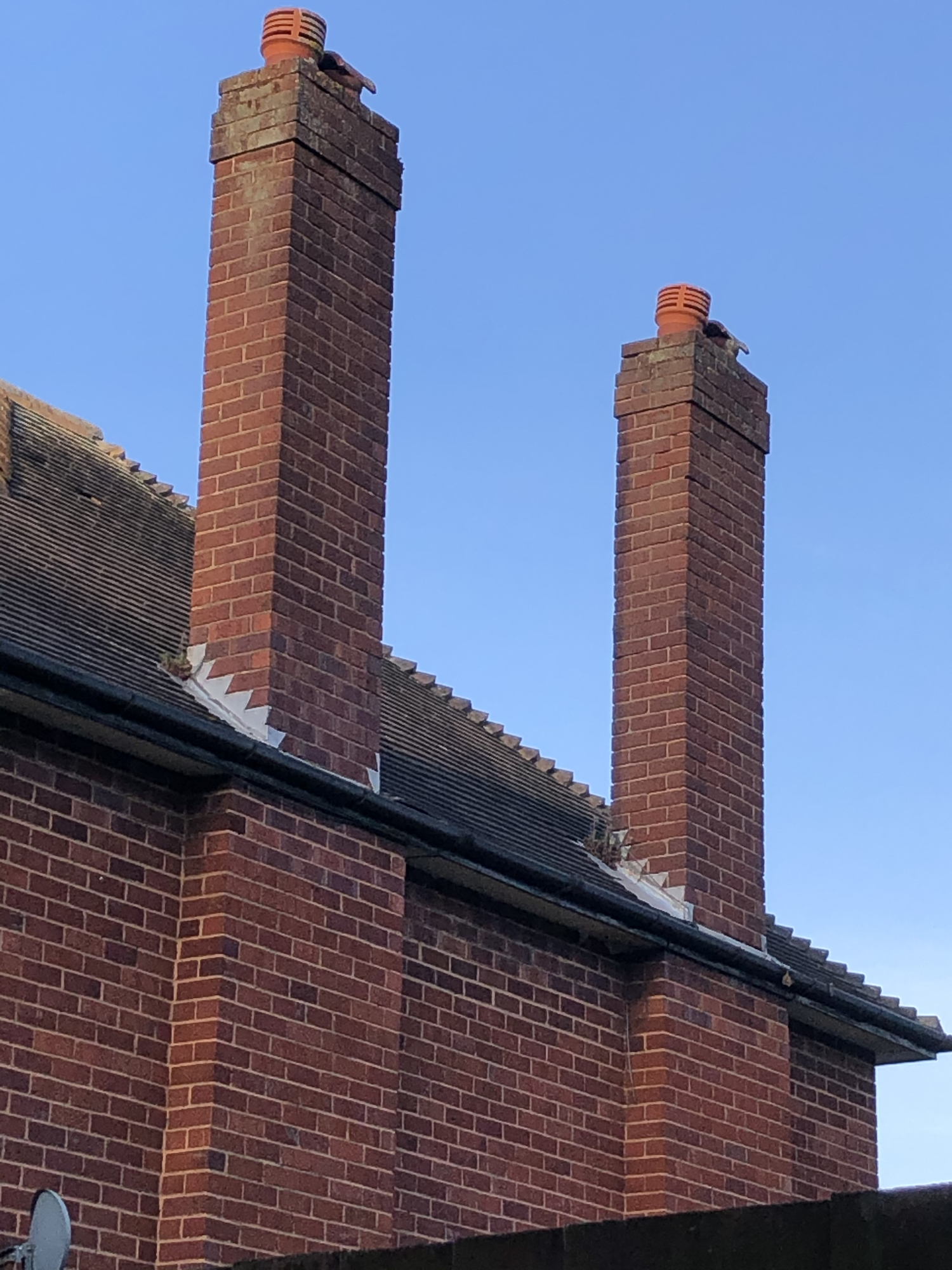 one roofer was of the opinion it’s flaunching as the wall has dark patches towards the middle and it would have been the flashing if the edges had the patches.