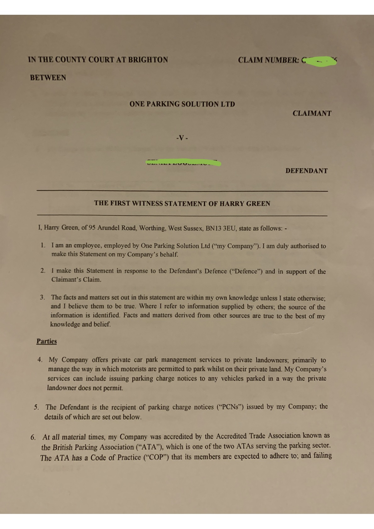 First and last pages of WSPlease note, we are not a legal advice forum. I personally don't get involved in critiquing court case Defences/Witness Statements, so unable to help on that front. Please don't ask. .