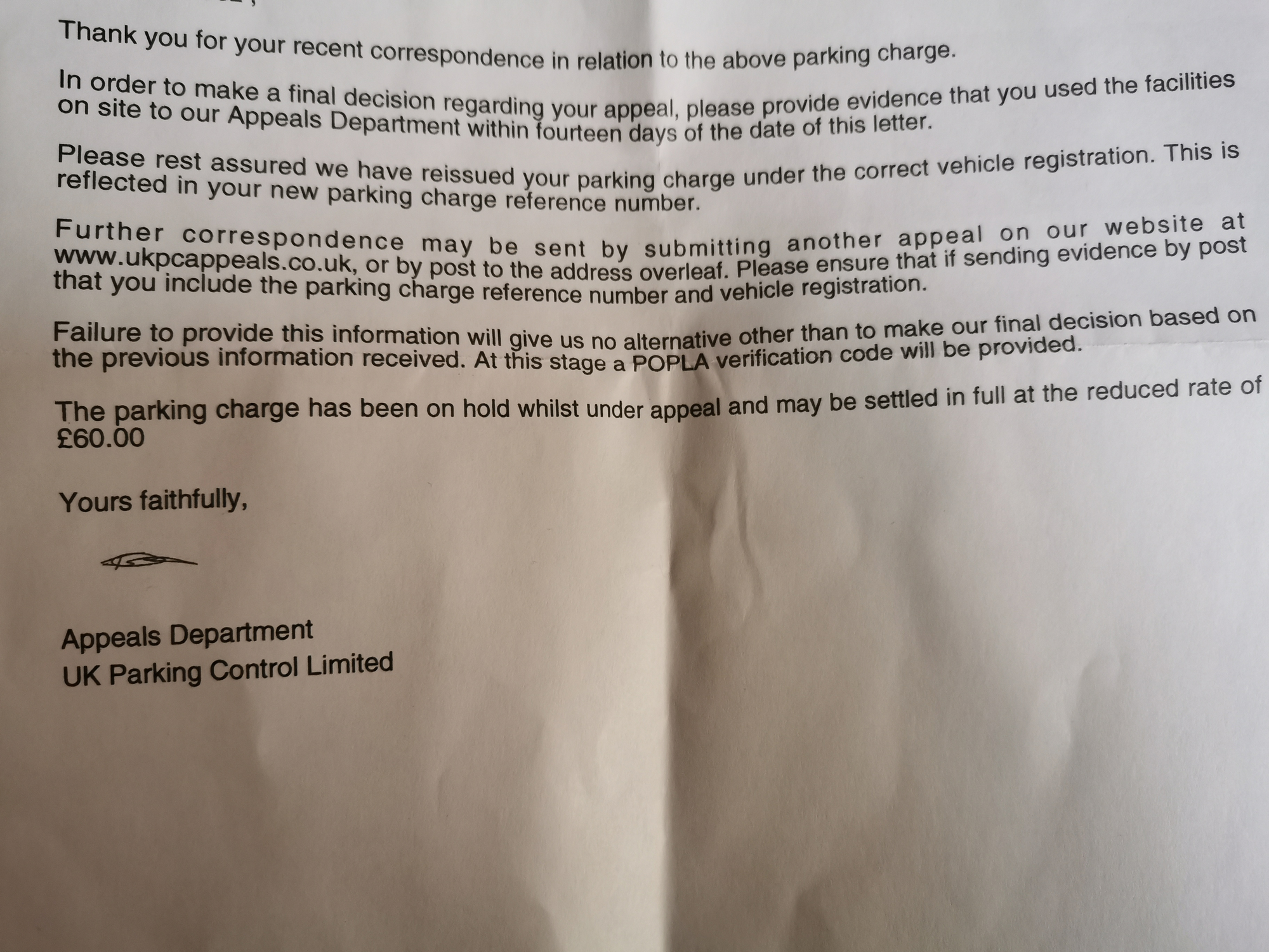 Do I just send them this in the appeal or wait for the POPLA?Re PCN number:I dispute your 'parking charge', as the keeper of the vehicle. I deny any liability or contractual agreement and I will be making a complaint about your predatory conduct to your client landowner.There will be no admissions as to who was driving and no assumptions can be drawn. Since your PCN is a vague template, I require an explanation of the allegation and your evidence. You must include a close up actual photograph of the sign you contend was at the location on the material date as well as your images of the vehicle.If the allegation concerns a PDT machine, the data supplied in response to this appeal must include the record of payments made - showing partial VRNs - and an explanation of the reason for the PCN, because your Notice does not explain it.If the allegation involves an alleged overstay of minutes, your evidence must include the actual grace period agreed by the landowner0