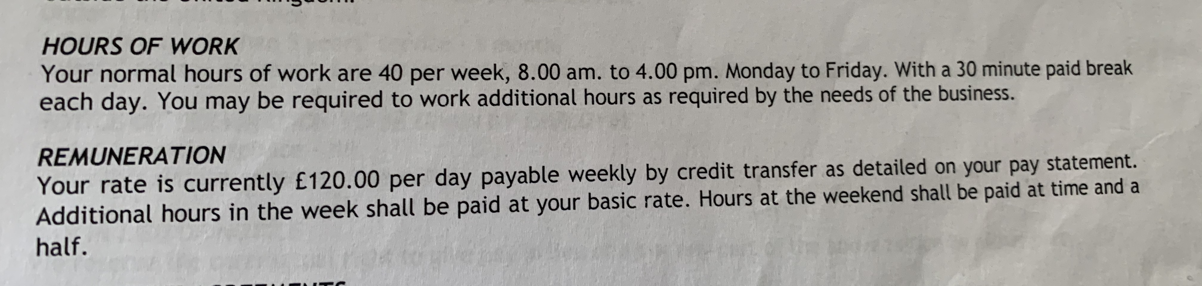 Daily rate has changed since contract was signed
