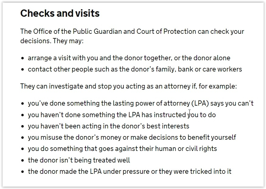 https://www.gov.uk/lasting-power-attorney-duties/checks-and-visits