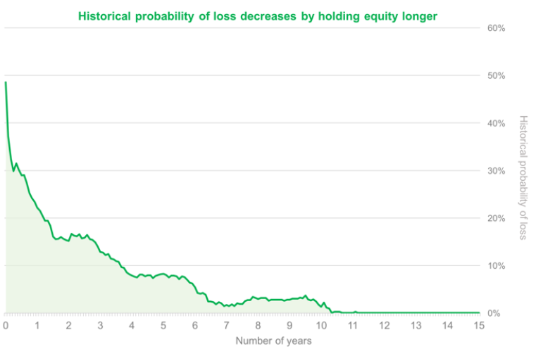 Investing in the stock market always carries the RISK that you may not get back what you put in. You invest if you are willing to RISK this in return for greater returns. The longer you invest for, the lower the RISK of losing money.
