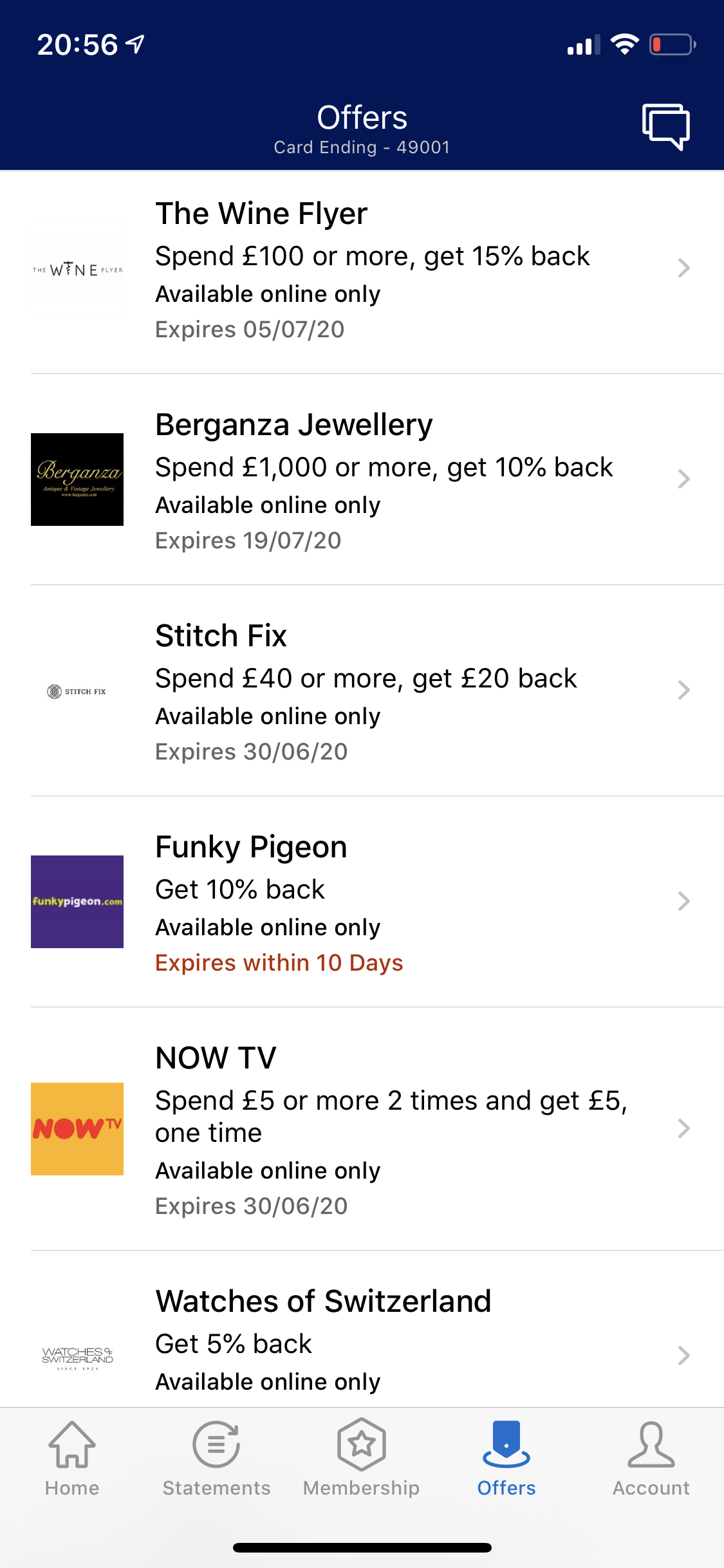That's interesting, I appear to have all of the offers you listed just on the one card.