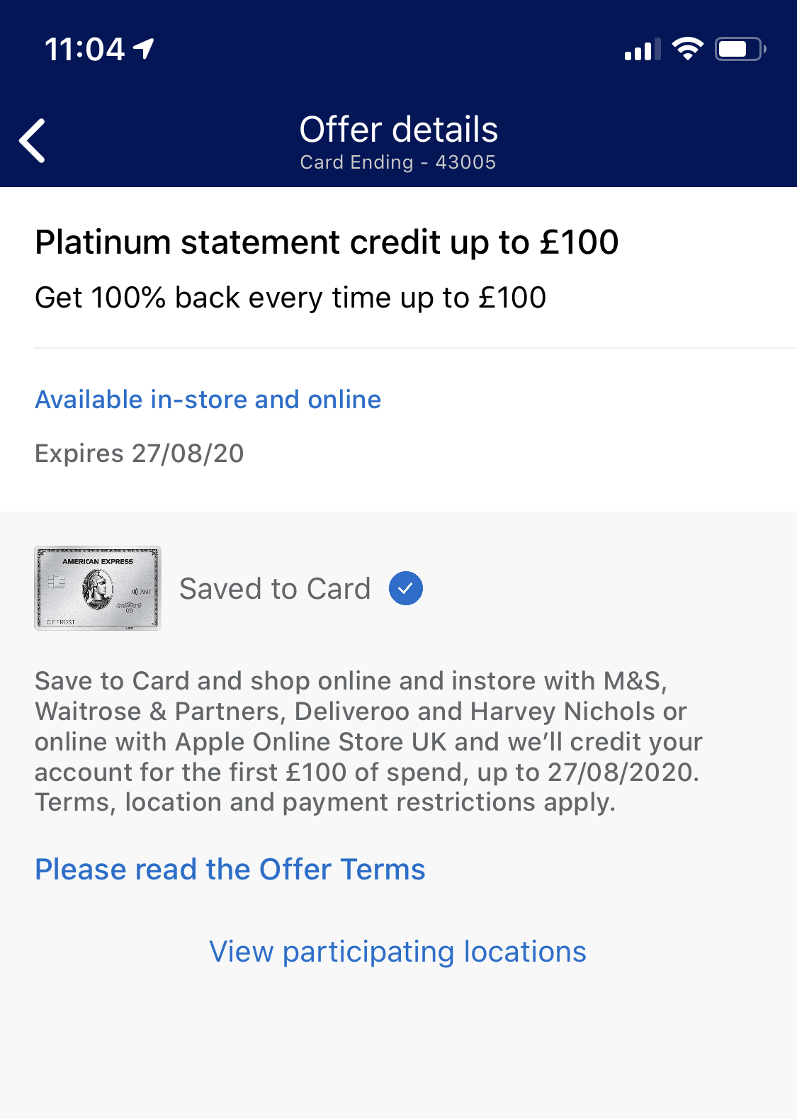 99.9% of Platinum cardholders got this offer.gjpowen said:A nice new offer came through on the Amex Platinum Card on Friday: