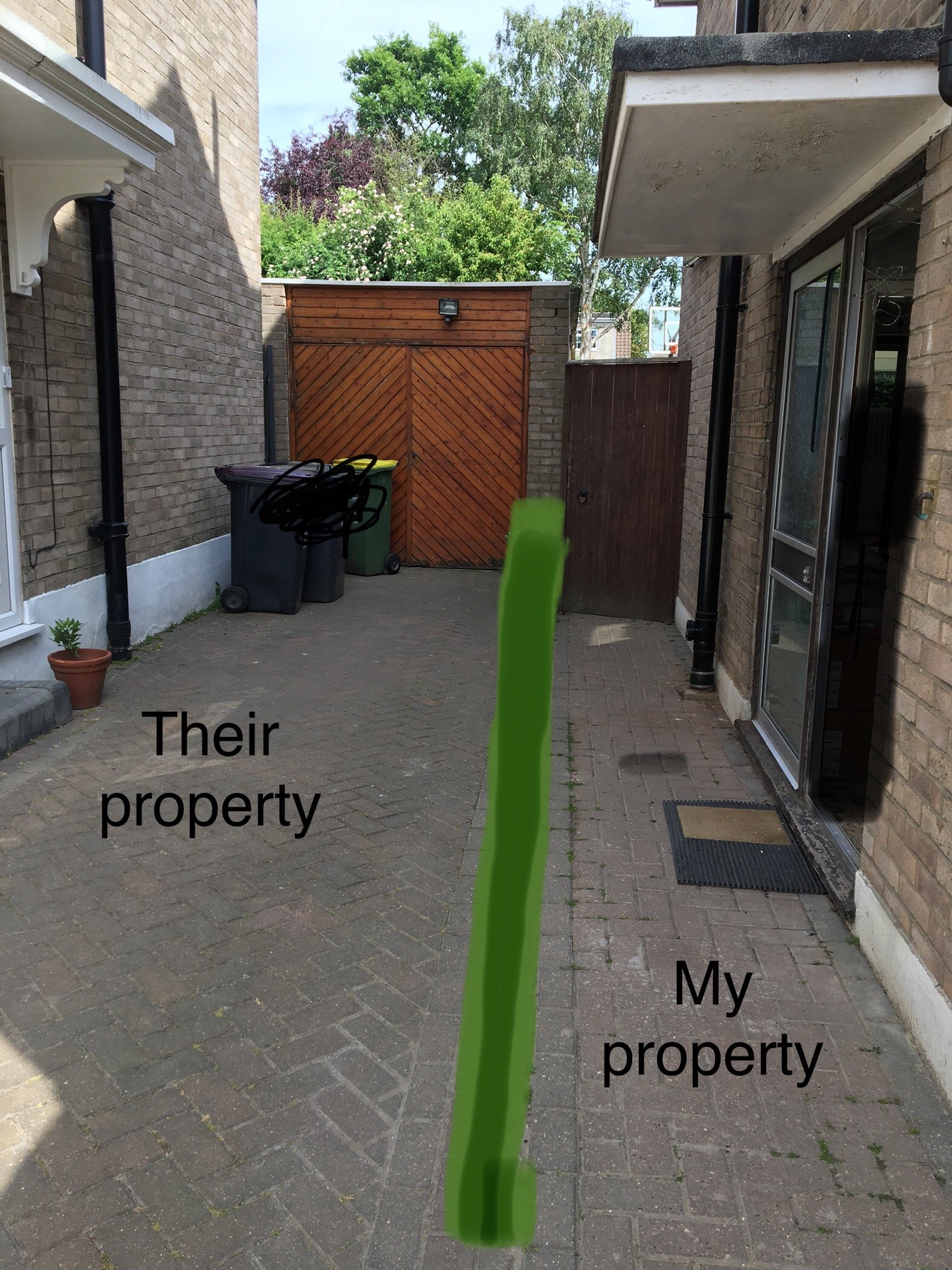 As an aside, a fridge freezer can easily be delivered into that door without using the neighbour's land.1 -