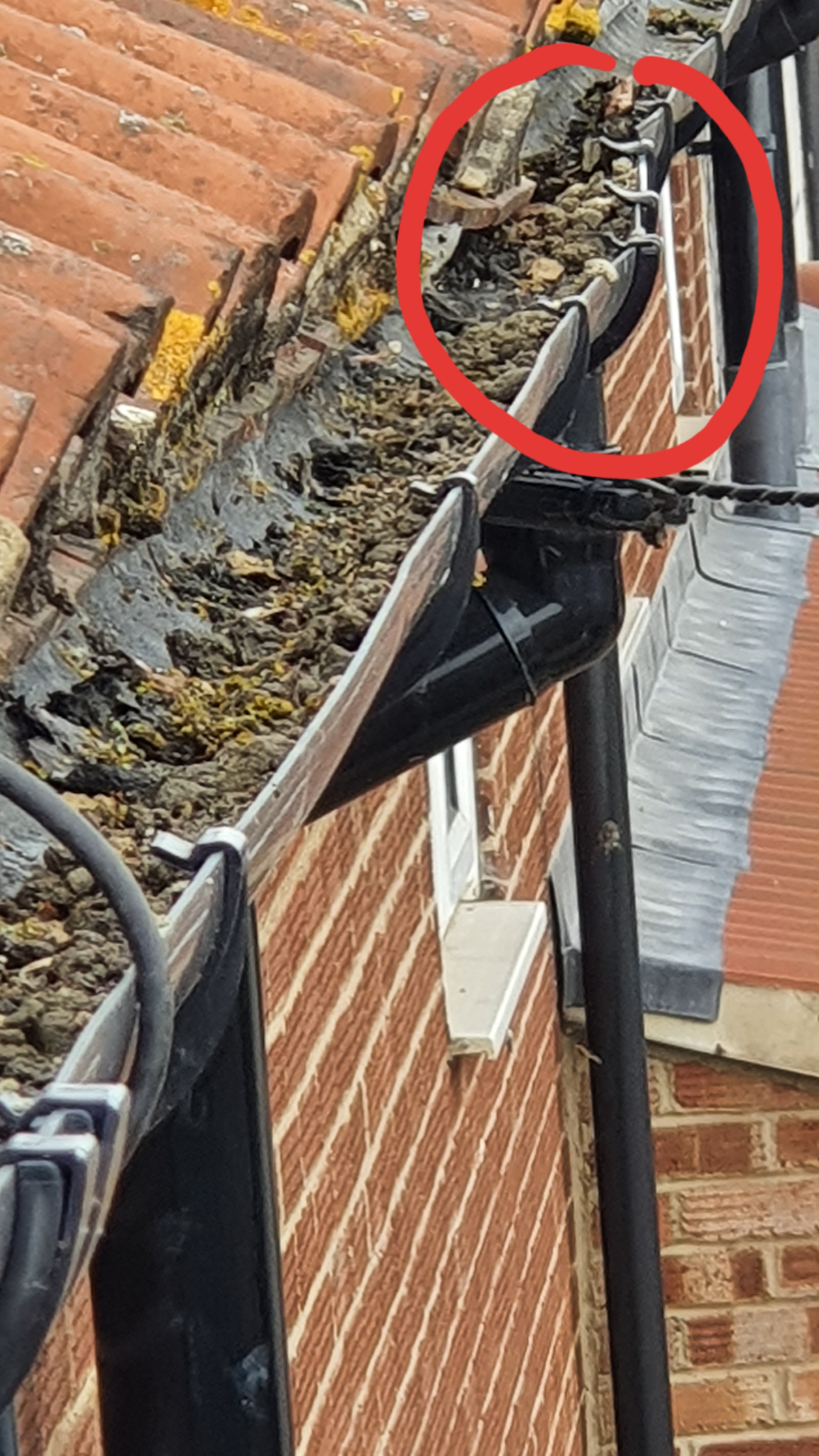 It also looks like part of the roof needs some repair inside the circled area , part of it sticks out further than the rest into the gutterTELLIT01 said:What you are seeing in the gutter is nothing to do with the work done by the roofer. It's a build up of moss and other debris from the roof. Clearing that is your responsibility, not the roofer, unless you had also contracted him to clear the gutters while he was there. The circled section of gutter is in a particularly poor state of repair and does need to be addressed.0