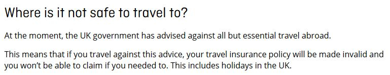 So, until the government lift that advice, any insurance is invalid..When will it change?https://www.staysure.co.uk/discover/coronavirus-latest/#now