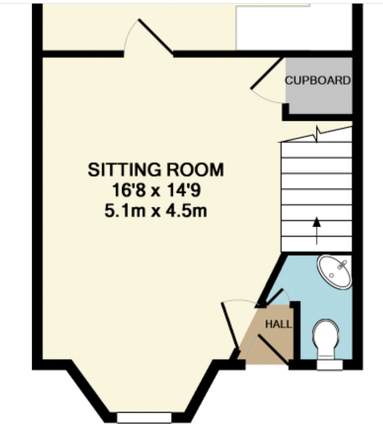 We had a similar issue in a previous home. We put a small sofa in the bay window and the larger one was parallel to your stairs so that you walked from the hall door behind the sofa to the kitchen door. Our kitchen door was more to the right than yours though so effectively we had a straight walkway from the hall to the kitchen.As far as the TV is concerned, it does depend on which way the window faces and where the sun will fall in the evening when you are likely to be wanting to watch it.Looking at your image again, how do you access your stairs? Our stairs came off the hall.Make £2026 in 2026