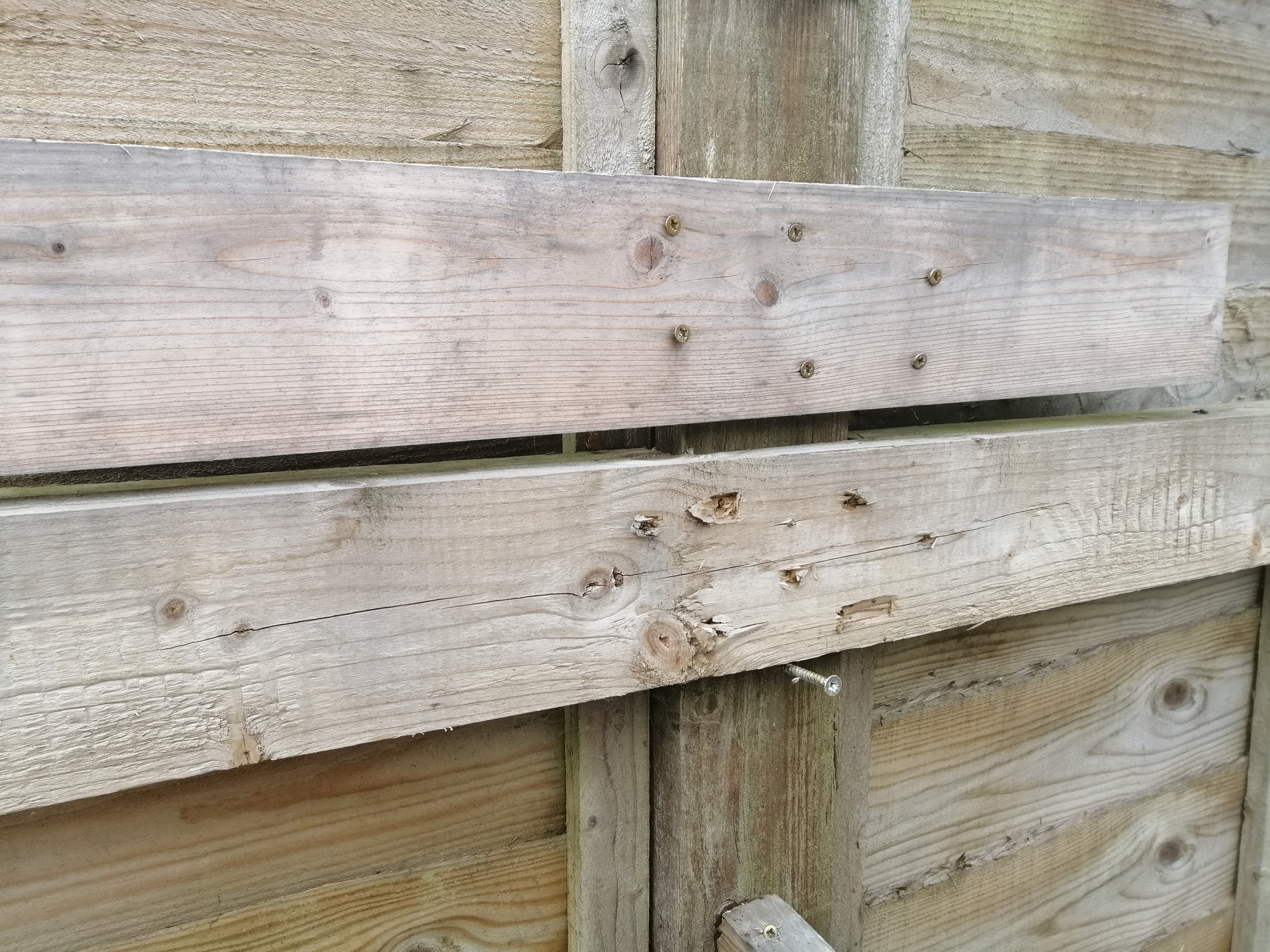 About a year ago the fence started falling so my neighbour took it upon himself when we were out to trespass onto our property and add as can see from the picture this unsightly looking bodge job to keep the fence from I'm not 100% what. Obviously he has done this is on our garden side so he can keep his side nice to look at and we have to deal with this to look at. When approached (politely) first off he got aggressive and defensive and said we can't take it down or the fence will fall. We proceeded with that he will get it sorted. It has been a year and I approached again yesterday where he then got aggressive again, said a load of nonsense, that he will get sorted and then ended in we can do what we want. So after taking all the nails out on our side so I can actually see what the problem is (or atleast to make it look neater) and or try to fix I have found out he has also stuck nails through from his side aswell so we actually can't even get the wood off! and I presume from his previous attitude to the situation he isn't going to take kindly to me asking him to take them out. Not sure if there is anything I can do to get these wood pieces off without doing to much damage from pulling or get in between to cut his nails from our side? Or even anything I can do from a legal stand point. Any advice would be great and if this is the wrong place to post super sorry.