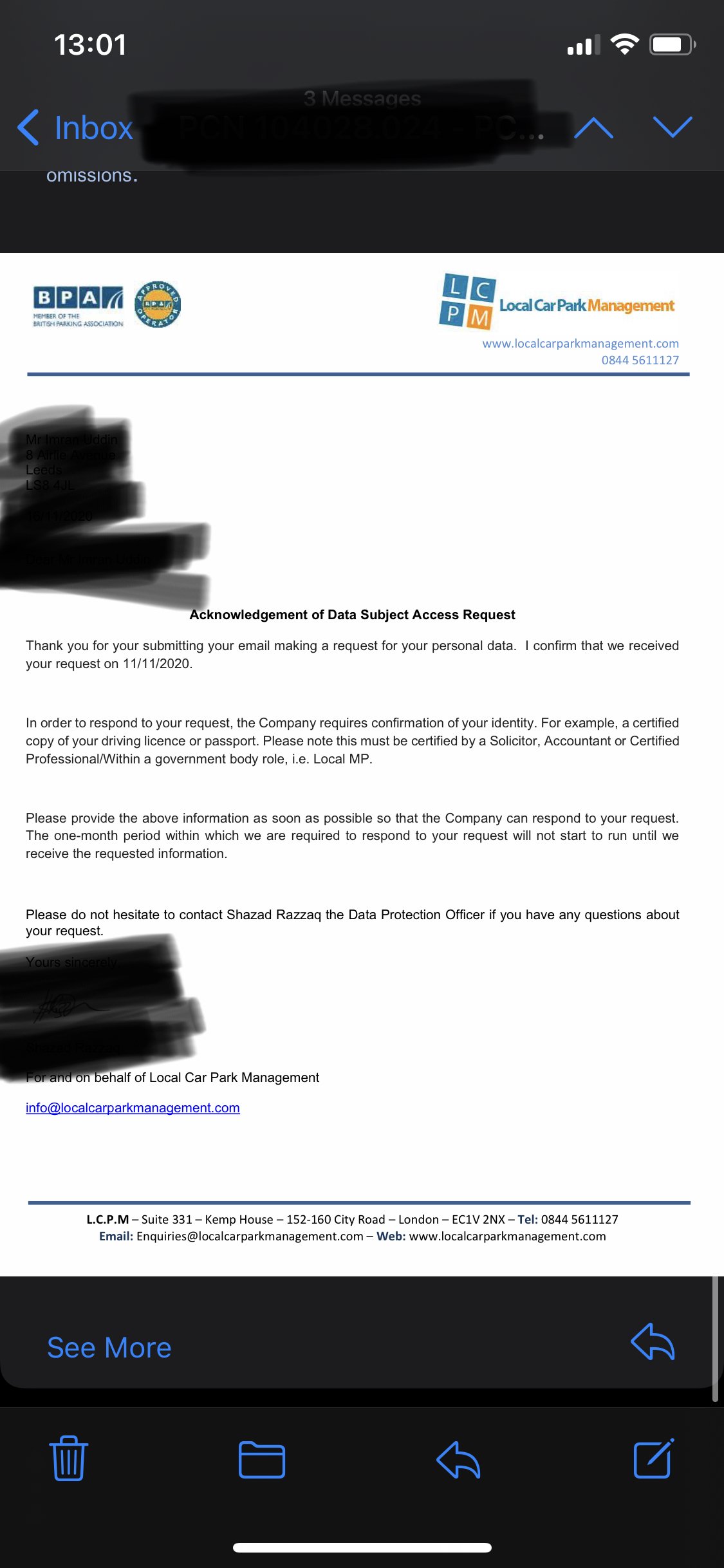 I have already sent an email to the solicitors, advising that I have sent the parking firm an SAR0 -