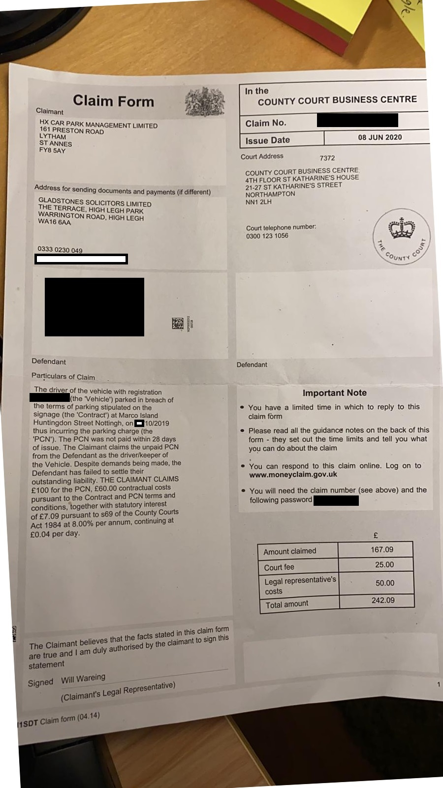 My Girlfriend has told me she has received court paperwork for an alleged parking offence in Nottingham the papers were received last week.