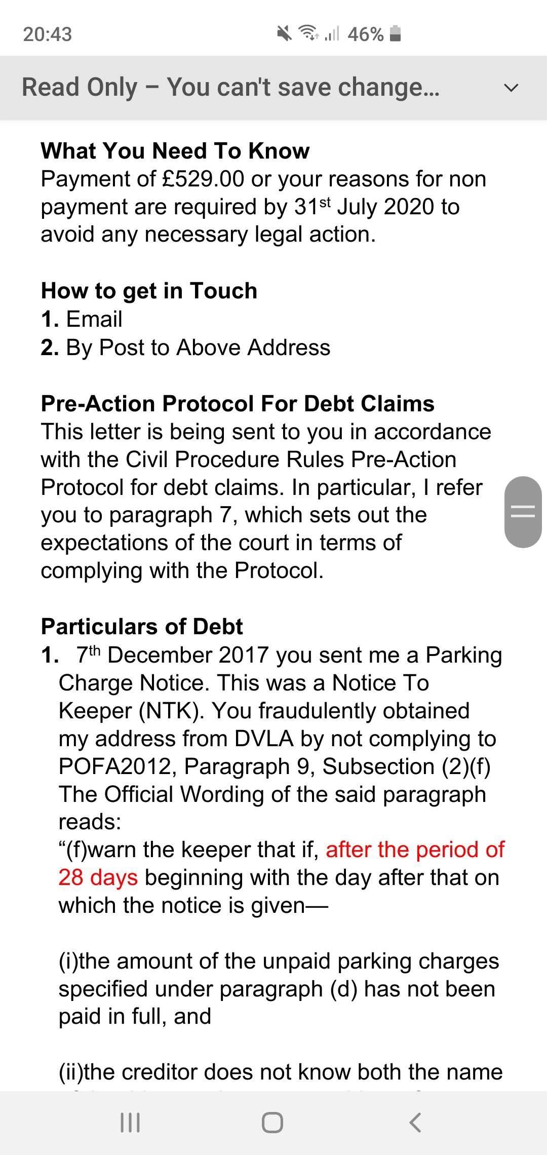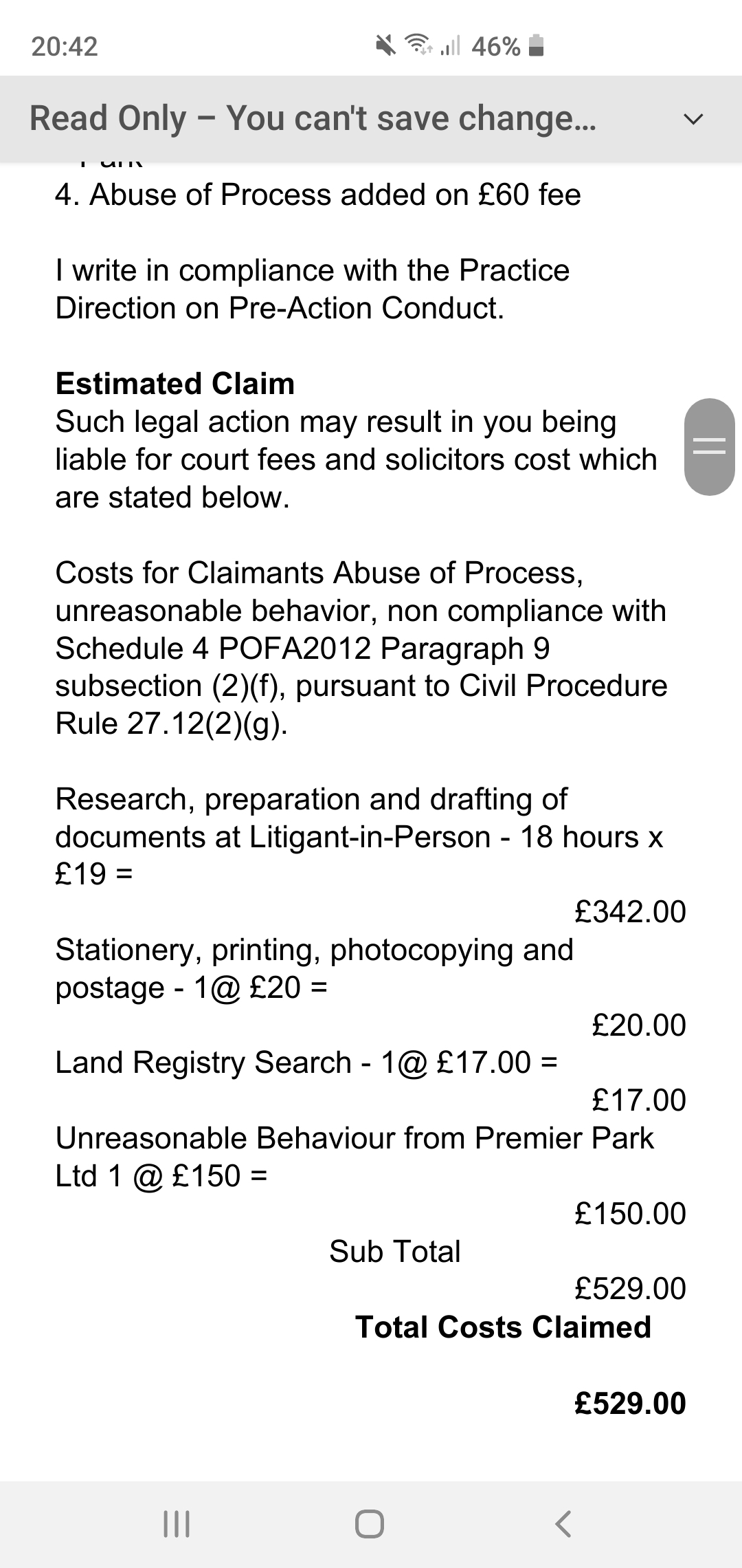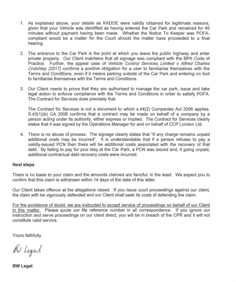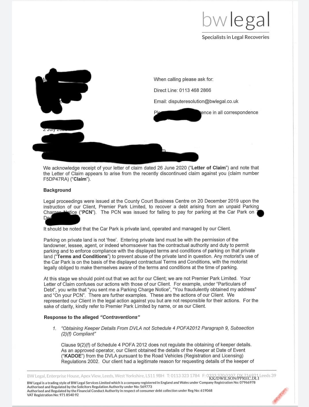 And don't name BW Legal as the Defendant. It's Premier Park Ltd but as you can see, they have said that any claim is to be served to BW Legal (but of course with Premier Park Ltd as the Defendant).