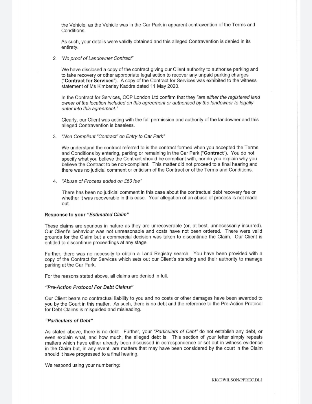 Reply to my letter of claim
