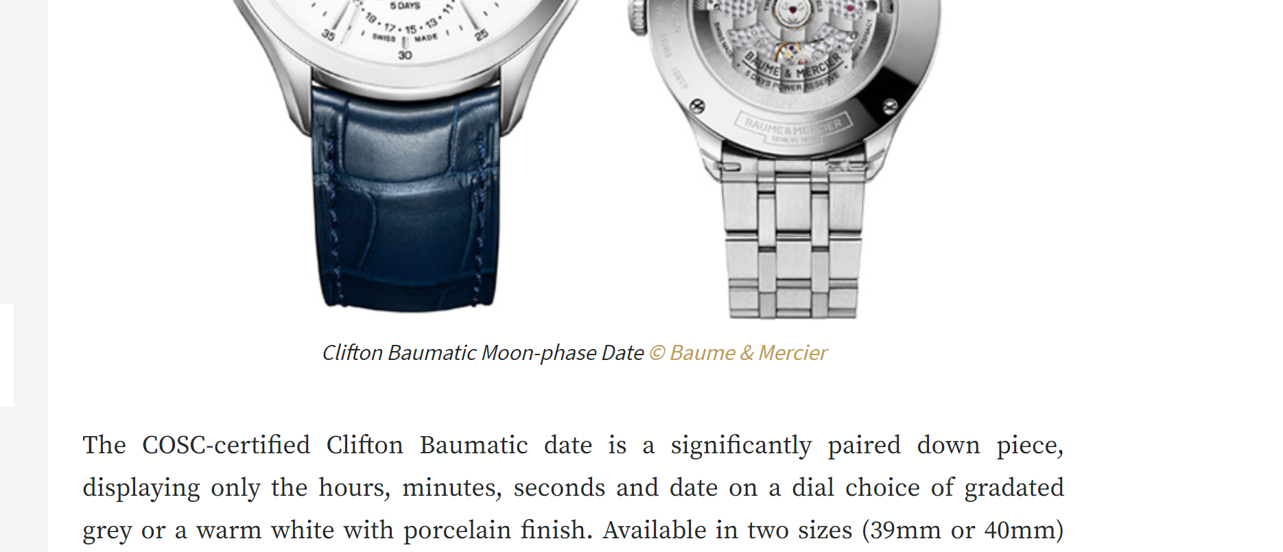 I concur with just date. The Baumatic Moon-phase Date has the moon phase, but the Baumatic COSC does not.14