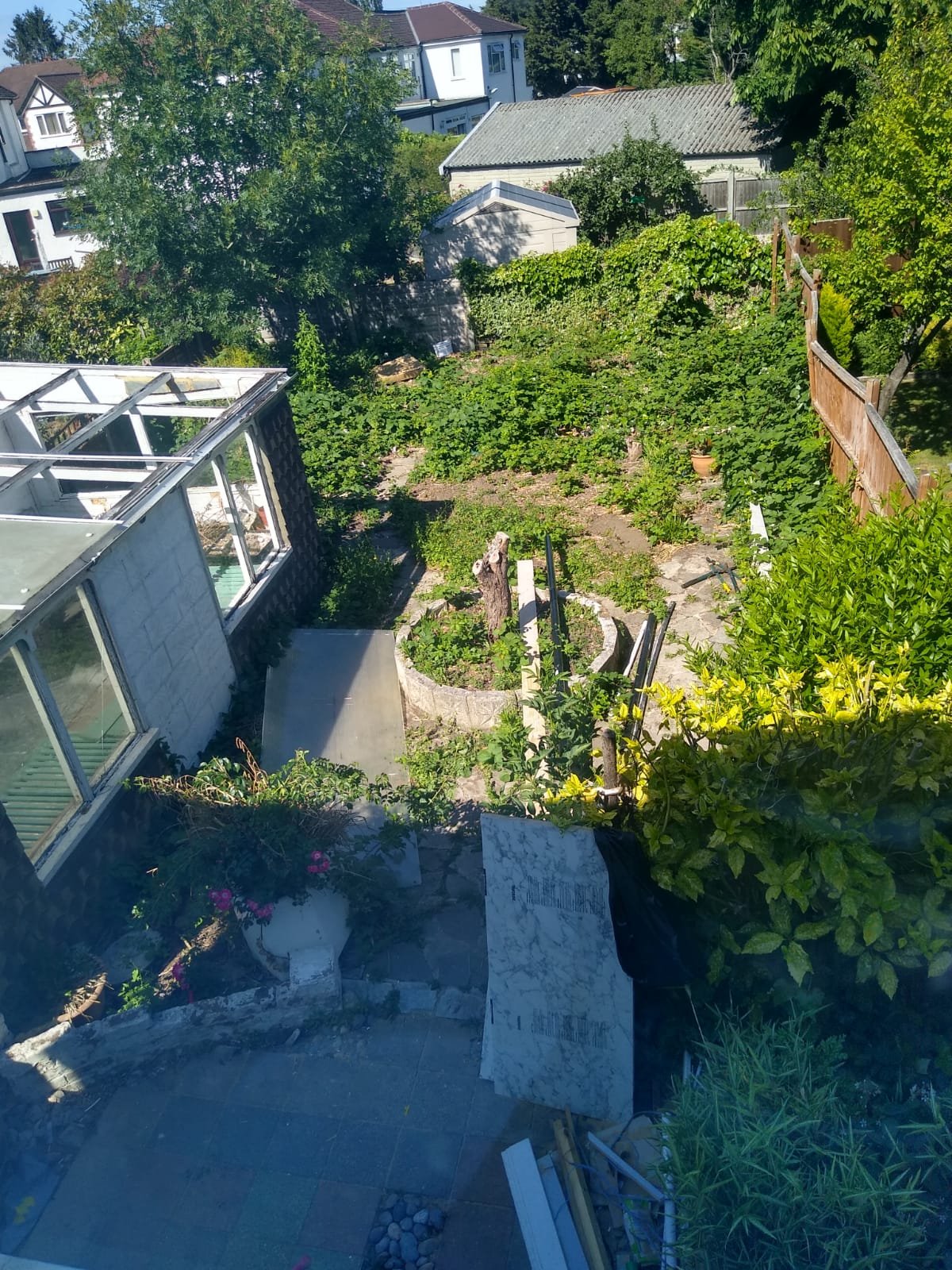 I think your garden is possibly a bit bigger, however it looks similar to what ours was like. We had four trees taken down and stumps removed. Vegetation everywhere and a decking area removed. New path and patio with turfing and rearranging fence for £4500 (I’ve no before pic).