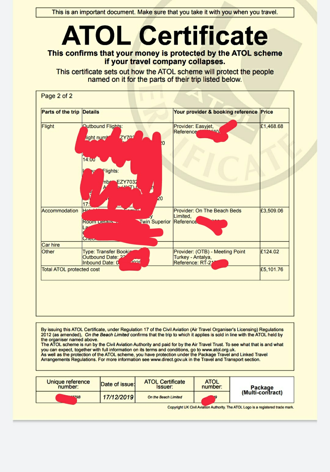 I would argue that given that you appear to have initially booked a full package from your original certificate, that if the flight has been cancelled the whole package is unable to be fulfilled at their end so you are entitled to a full refund.andy69_2 said:The money was taken out of account in one lump sum.
