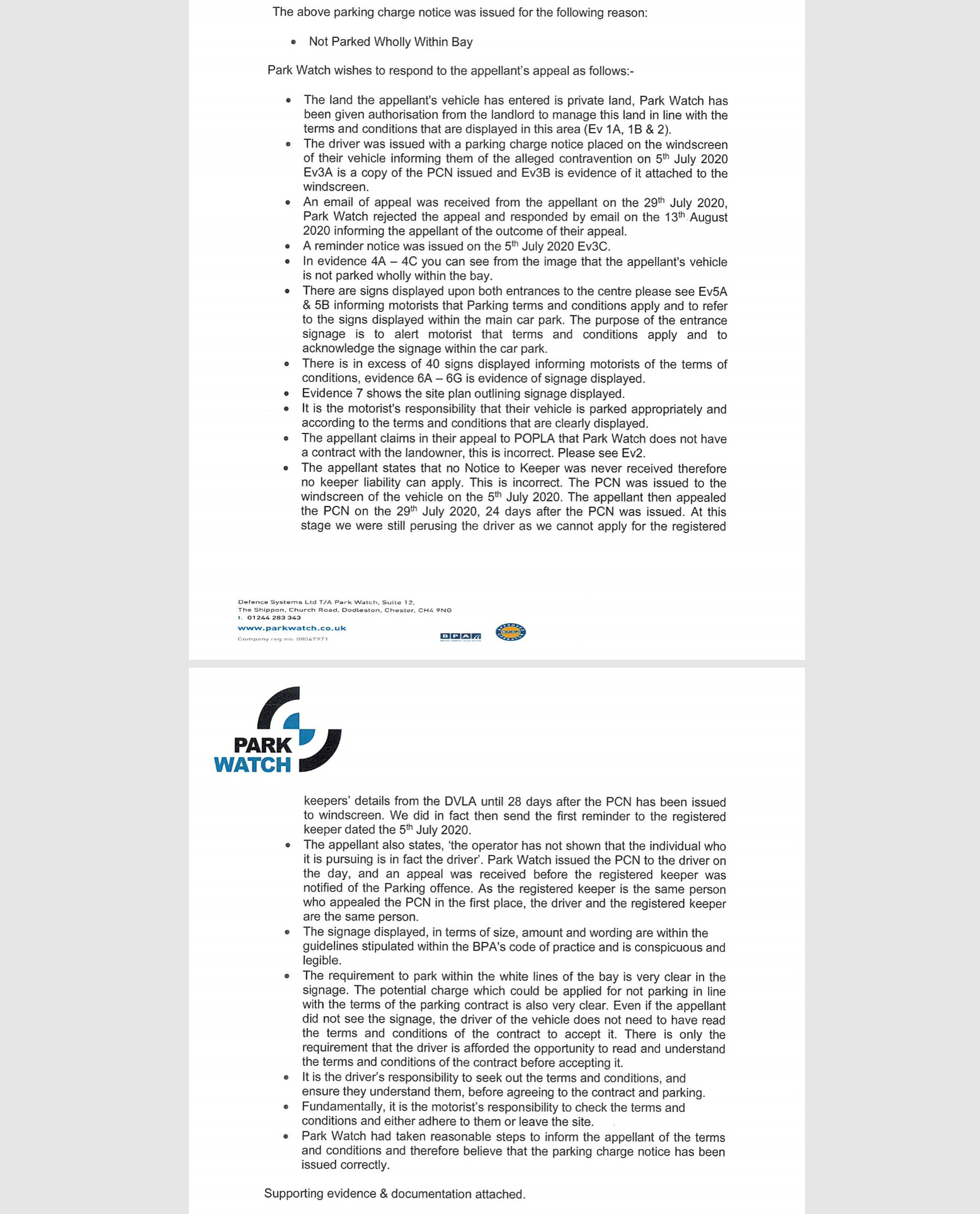 Received Park Watch Response today and got 7 days. I am thinking of pasting below bear in mind that I an only do 2000 words – need to shorten it. Also ignored the contract bit - not sure and don't think have enough space.