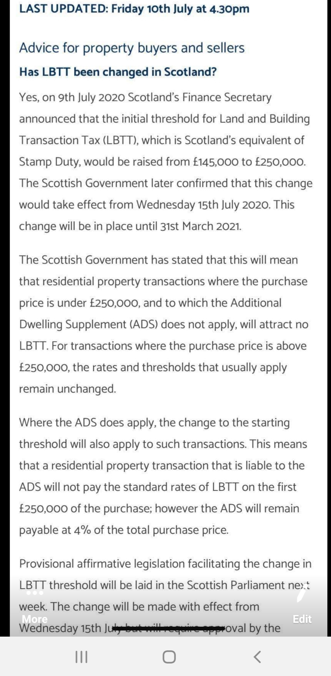 Our Solicitor has sent us an invoice which is asking for the LBTT amount to be paid and the £11k ads. This suggests that we are not entitled to any money off ( even with the new guidelines in place?)0 -