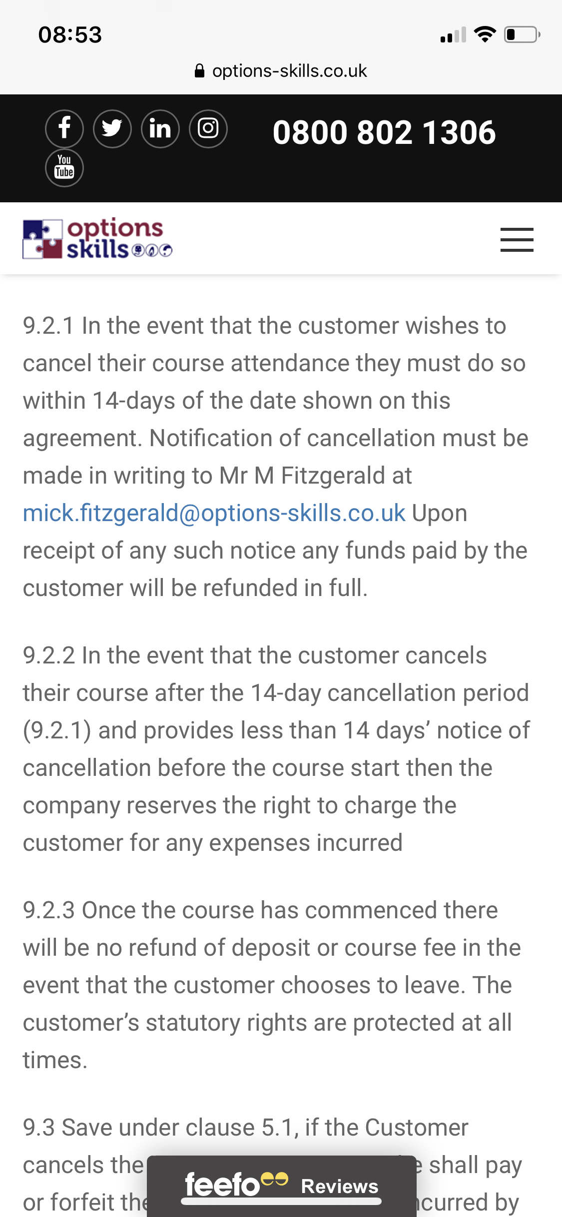 Clause 9.2.2 seems to set it out, so I think you've answered your own question.Rob.Mobile said:I recently enrolled and paid for a course before lockdown, but due to lockdown they Move my start date to Mid August. It has become impossible for me to do the course now and my financial situation means that I need to cancel abs ask for a refund. They have told me that this is not possible and will only offer me half due to the fact that they have had to register me for the qualification, purchased materials and set up the online learning platform. I am attaching the cancellation clause, can any tell me where I stand?