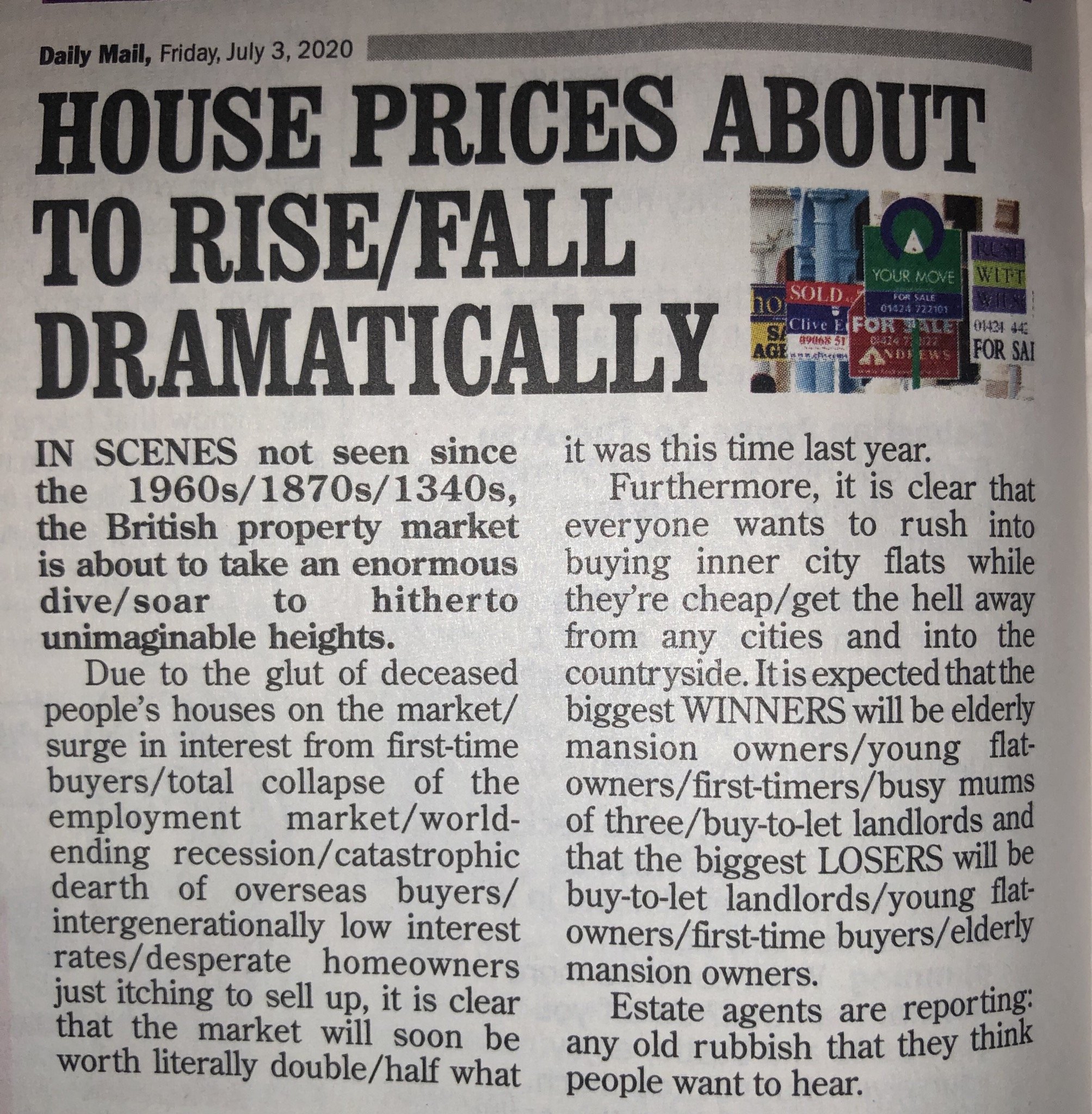 Well - it’s on the minds of many in the housing market - and have just come across this article that should answer everyone’s burning question as to whether house prices will go up or down. 😂