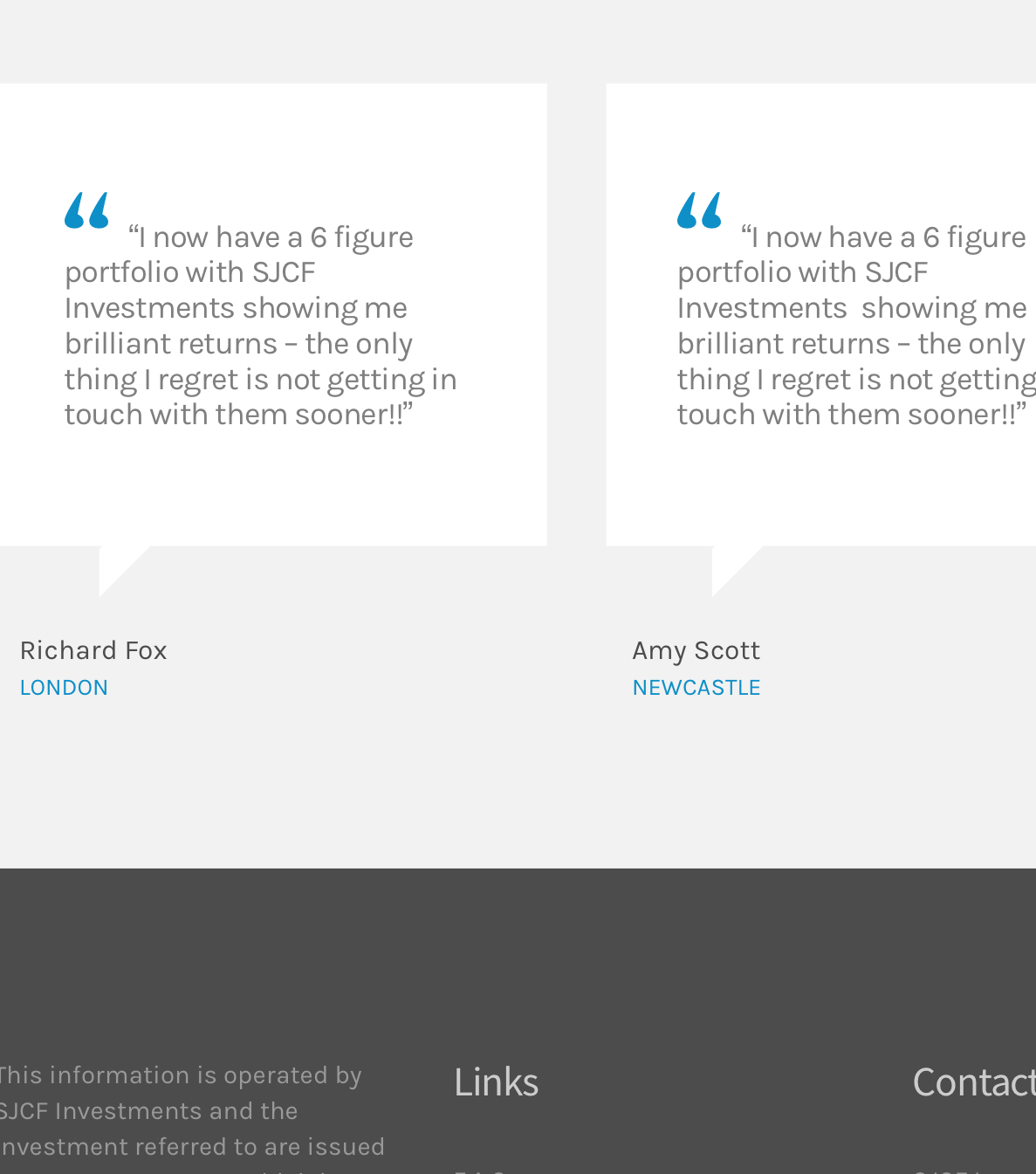 The domain from their email is sjcf-investments.co.uk (plural) which was only registered in June 2020 (check WHOIS on sjcf-investments.co.uk). They also link to a fake FCA website domain in the footer of the email which was registered in July 2020 (check WHOIS for register-fca-orguk-shpo-firmdetailspage-001c00n1lsuaae DOT ORG).