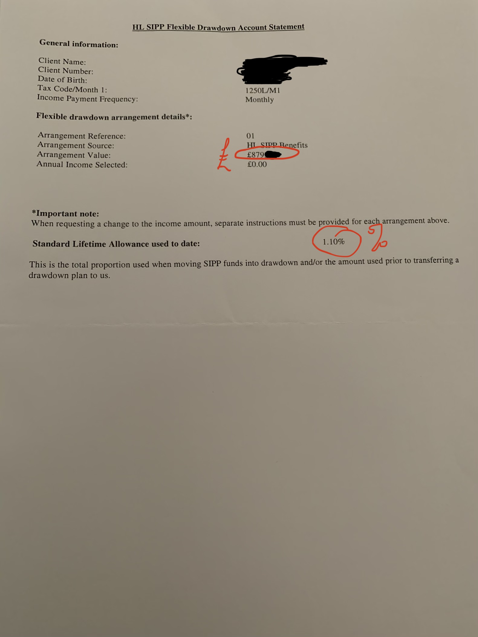 garmeg said:A J Bell give you a certificate and at the bottom it tells you the starting income drawdown fund, like in the following anonymised example ...