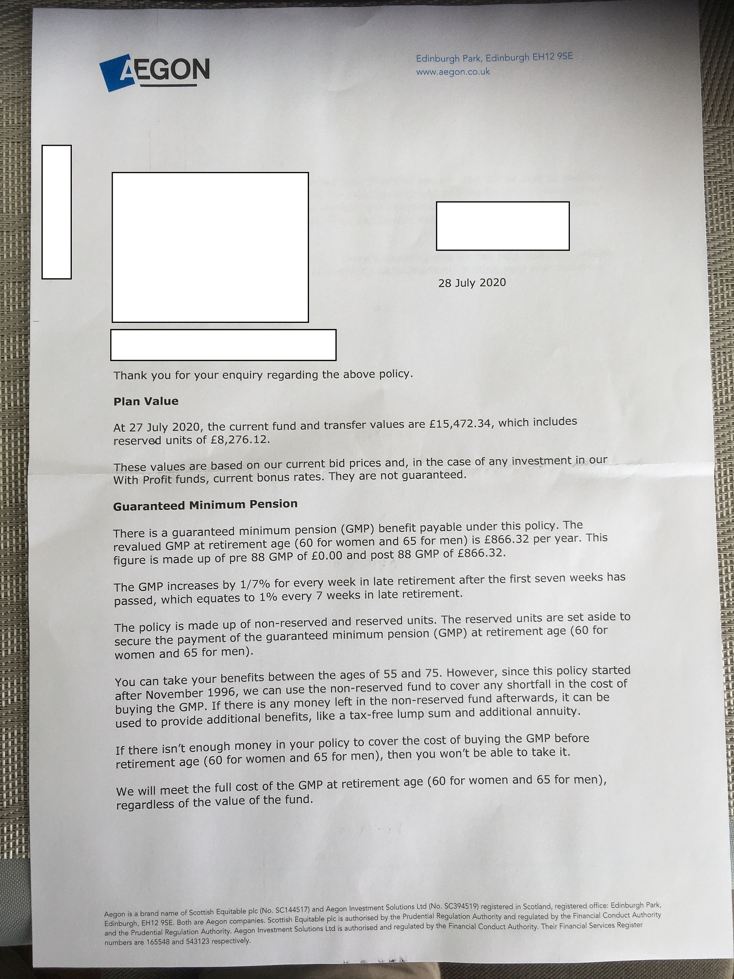 This pension would have become available to him at the age of 65 - Aegon would have been responsible for index linking the GMP once in payment by up to 3% per annum.