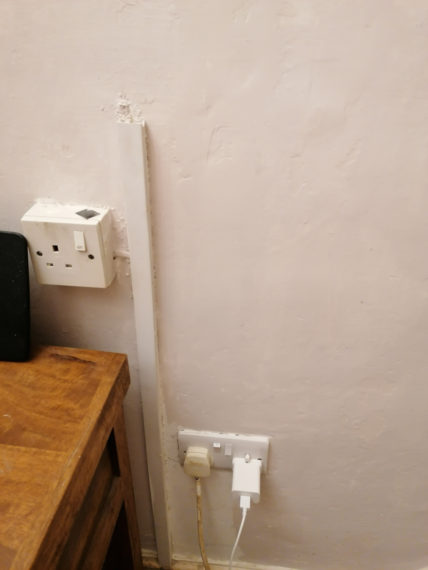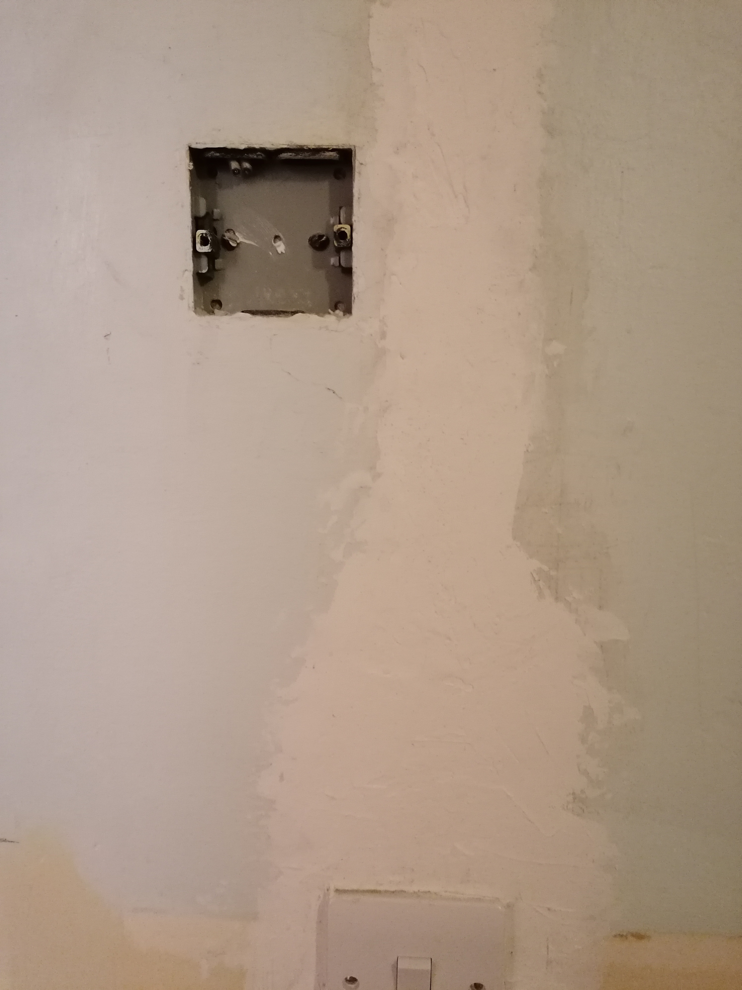 Is removal of these a normal part of a rewire? There's no formal contract because my mum hired a local on the basis of a recommendation of a friend. I think he did try to come back, but couldn't arrange definitively because of her being ill, but I'm not sure. Before I call the guy to finish it, if I can and if it is something he should do, I need to know exactly what I should be asking for and whether it is actually his responsibility to finish this. If it is, advice appreciated on what to ask for. If it isn't does anyone know how to go about getting this looking a bit better?