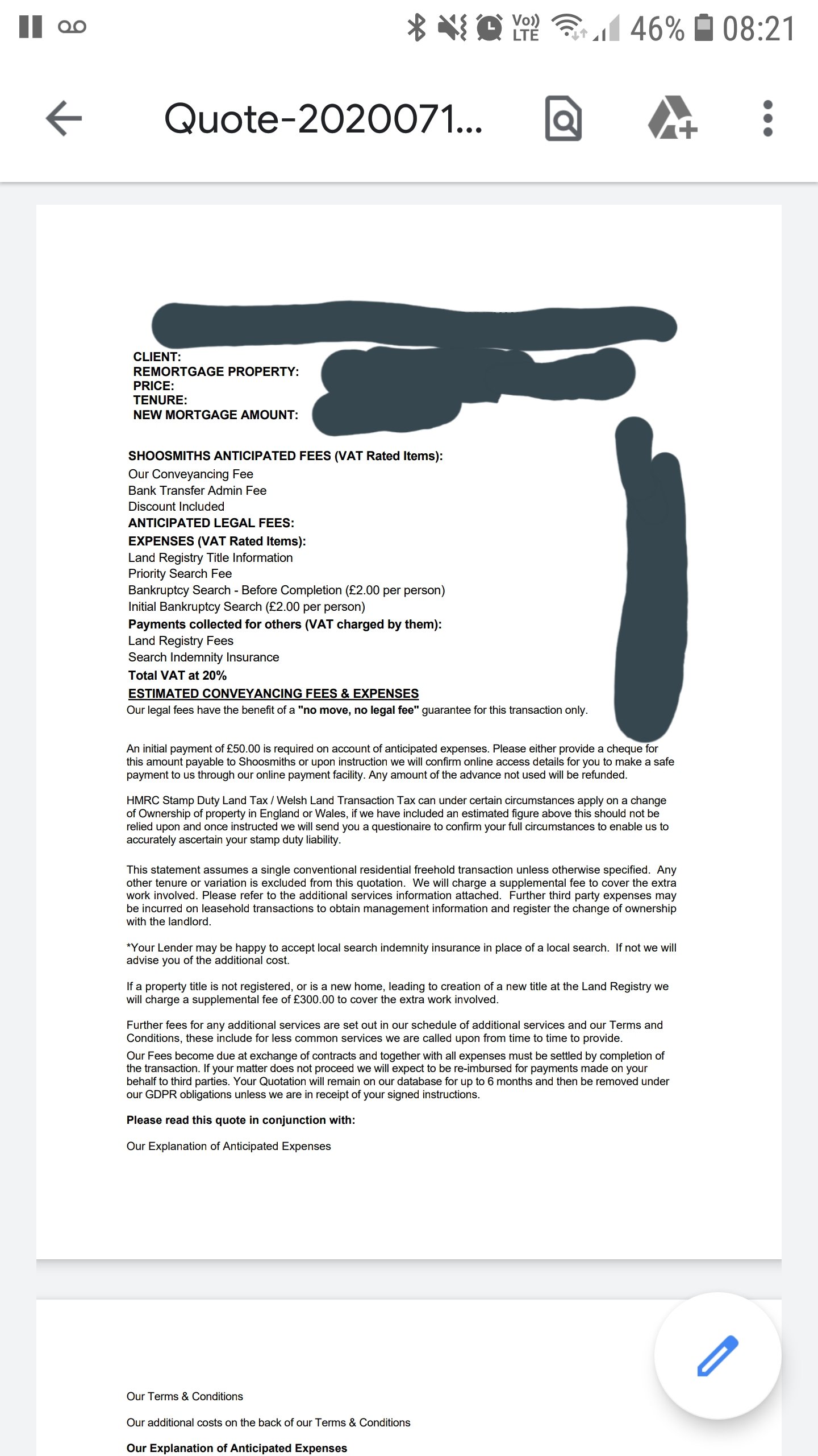 We have Had one quote but seems expensive and not sure we need every service they have quoted for, for a re-mortgage. Can anyone provide advice. Screenshot attached of quote item