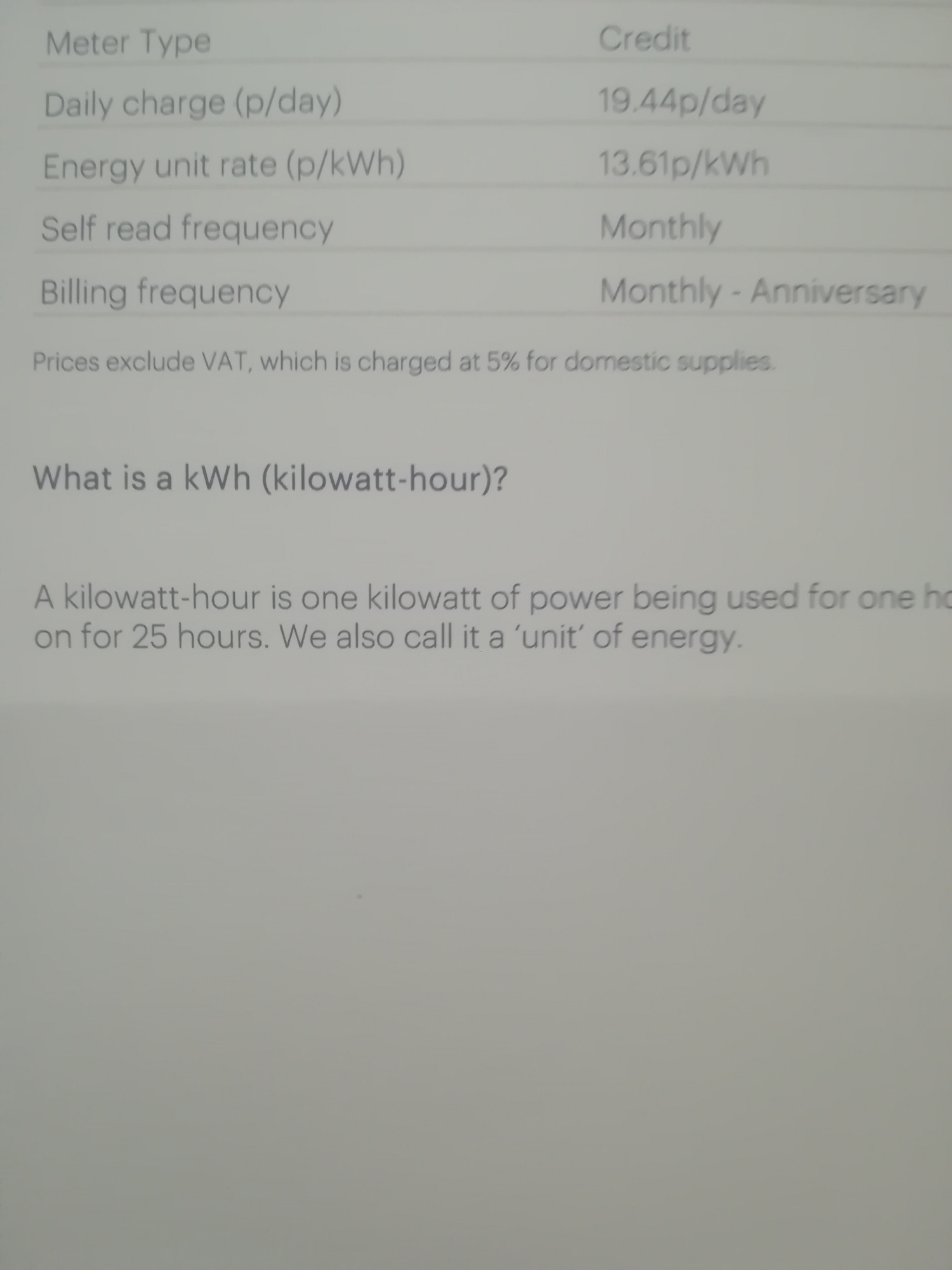 My Neon Reef rates (inc VAT)12.11343p per kWh, Daily Charge 13.2825p