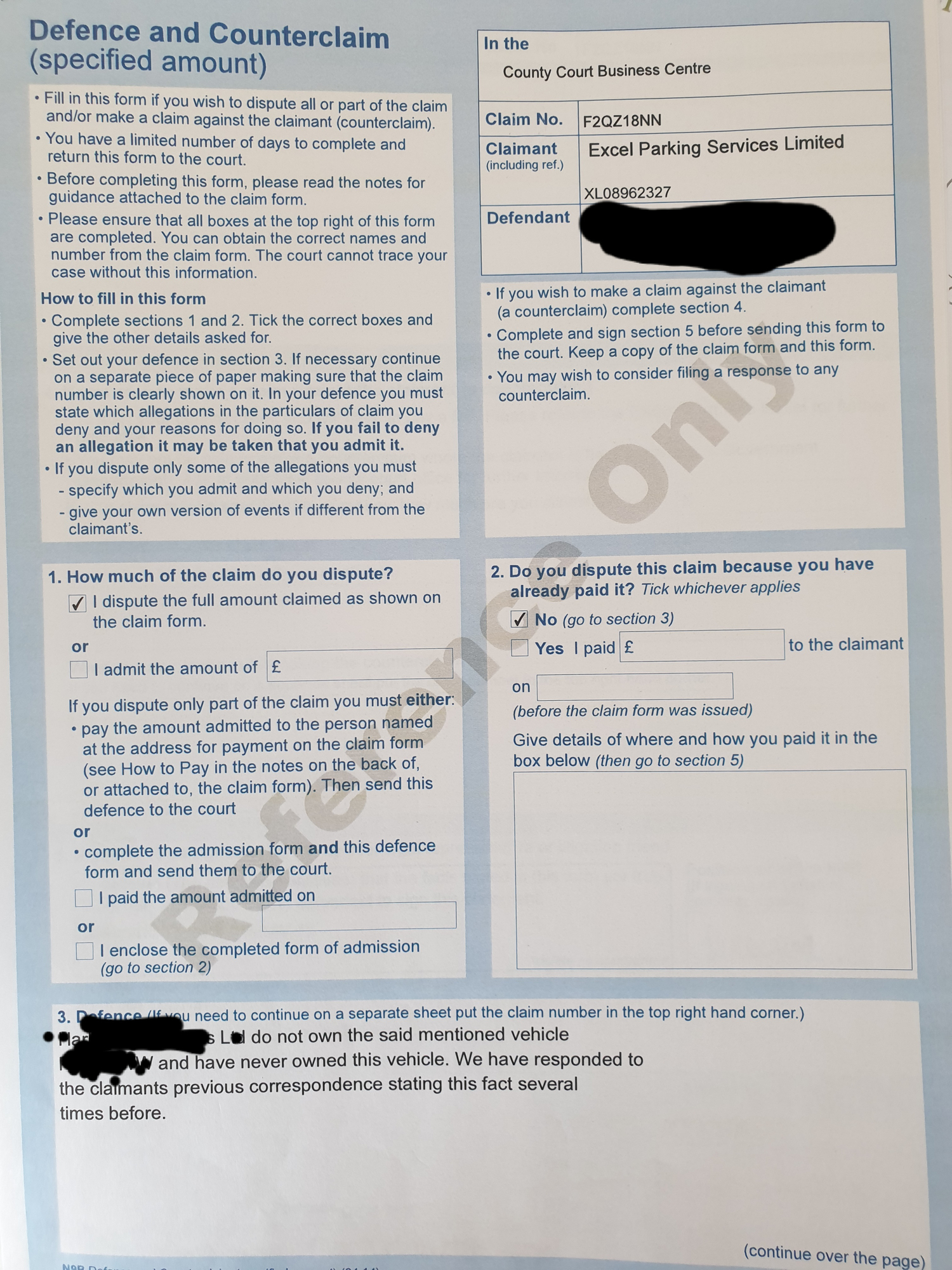 Le_Kirk said:Well that is deficient as a defence not only because it is extremely short and doesn't have a comprehensive set of legal and technical arguments but is totally different to what you said in your OP, unless the claimant has issued papers for the wrong VRM but if that is the case how did they obtain the name and address of the registered keeper, presumably your husband.