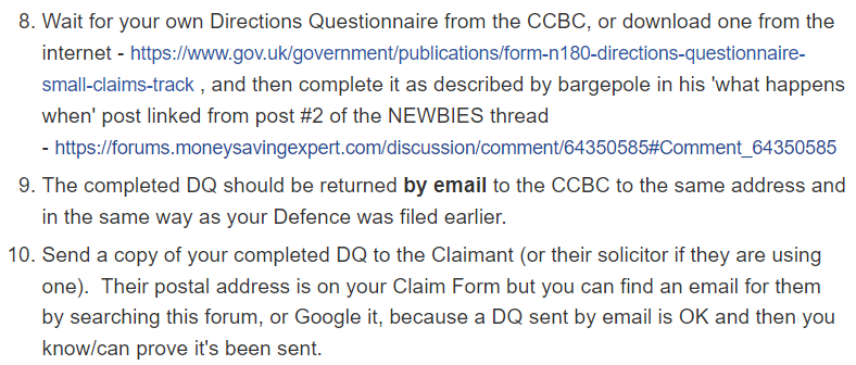 Well done on sticking to your guns and turning the court around on this.They only processed it today, I've not had anything in the post, but yet want the DQ back in 9 days time. Arggh!The DQ is a 5-minute job.Please note, we are not a legal advice forum. I personally don't get involved in critiquing court case Defences/Witness Statements, so unable to help on that front. Please don't ask. .